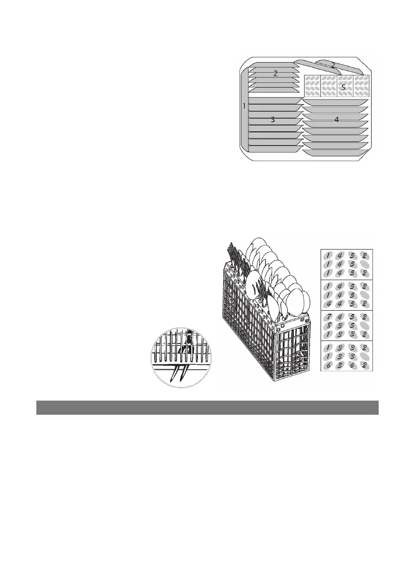 Столовые приборы должны помещаться в корзину ручками