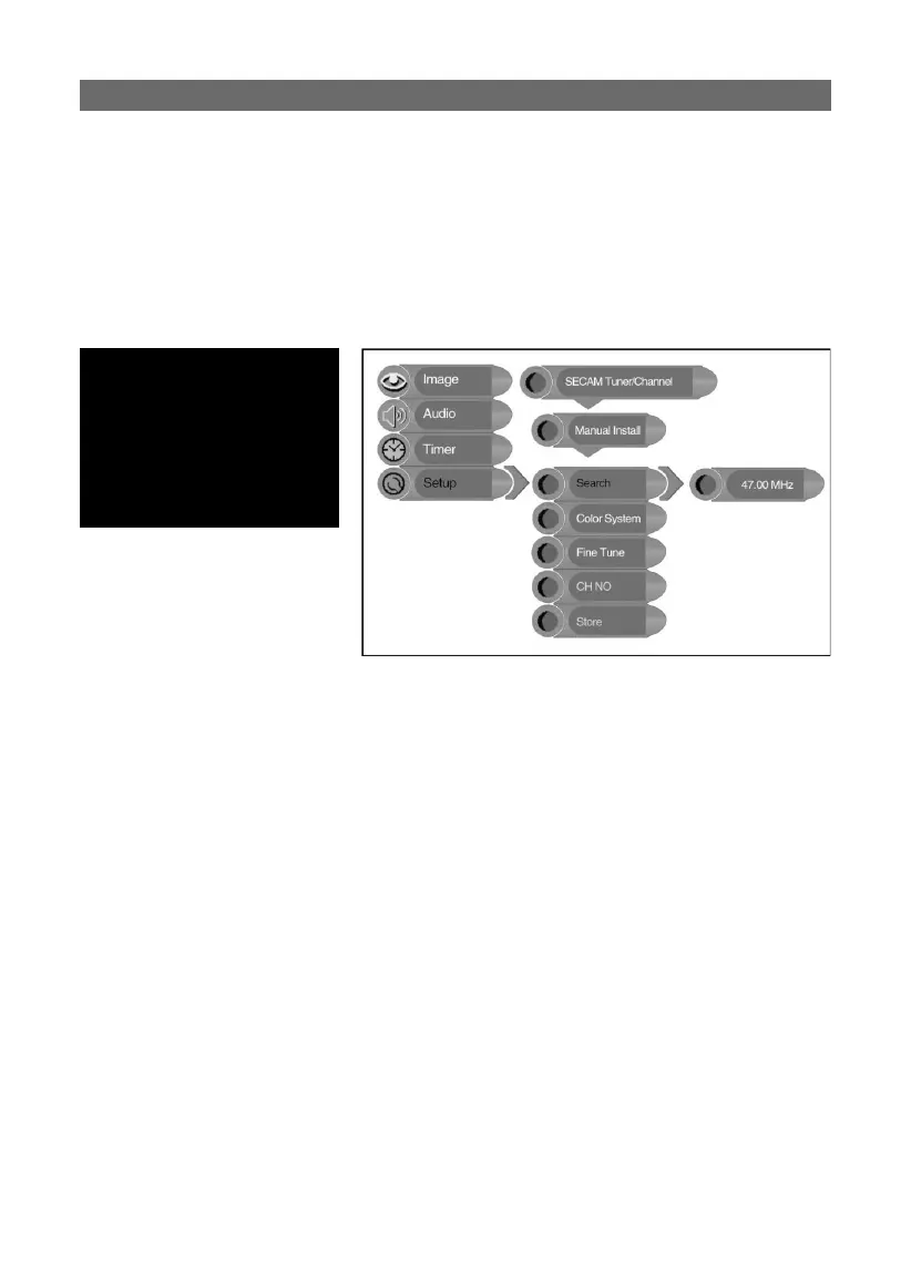 Press the “►” or “◄” controls to start fi ne tuning forward or backward. Press the “MENU”