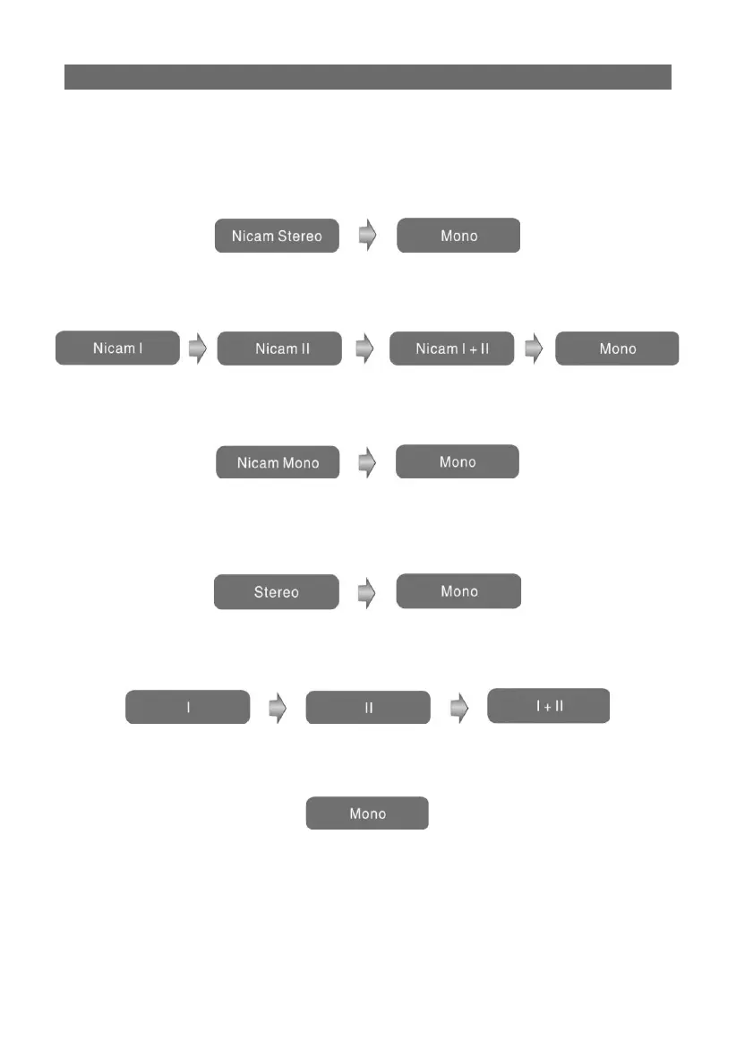 trol repeatedly to shift the sound tracks between Nicam Mono and Mono and the screen