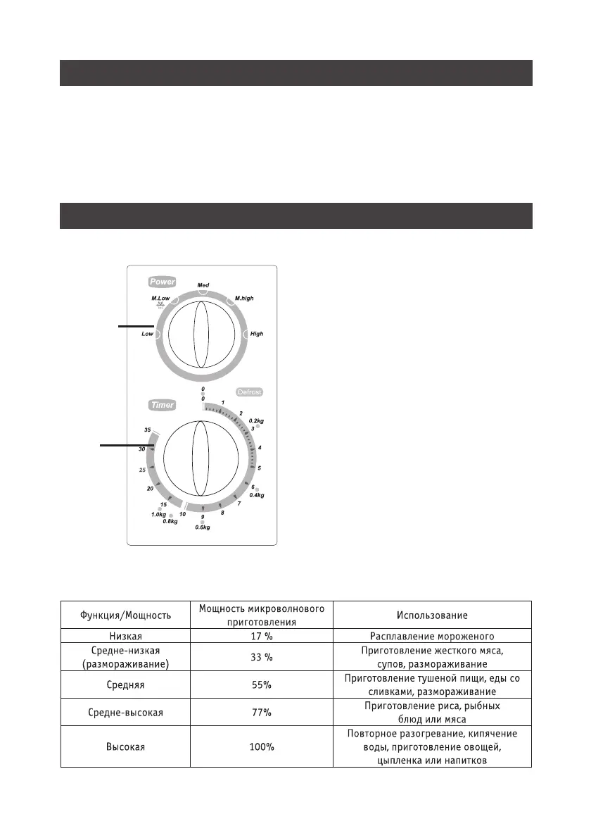 готовления, поверните ручку выбора мощ
