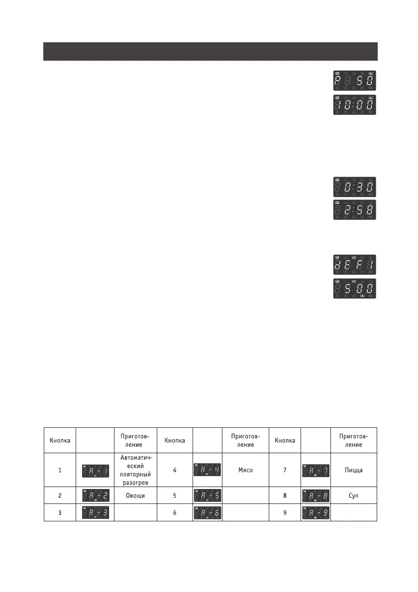 ной мощностью. Каждое дополнительное нажатие кнопки увеличивает время приготовления