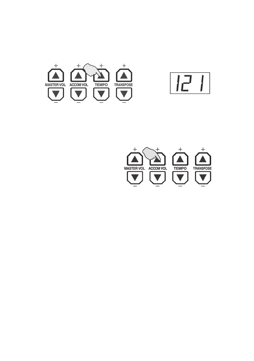 VOL+/-]. Громкость звучания аккомпанемента зависима от основной