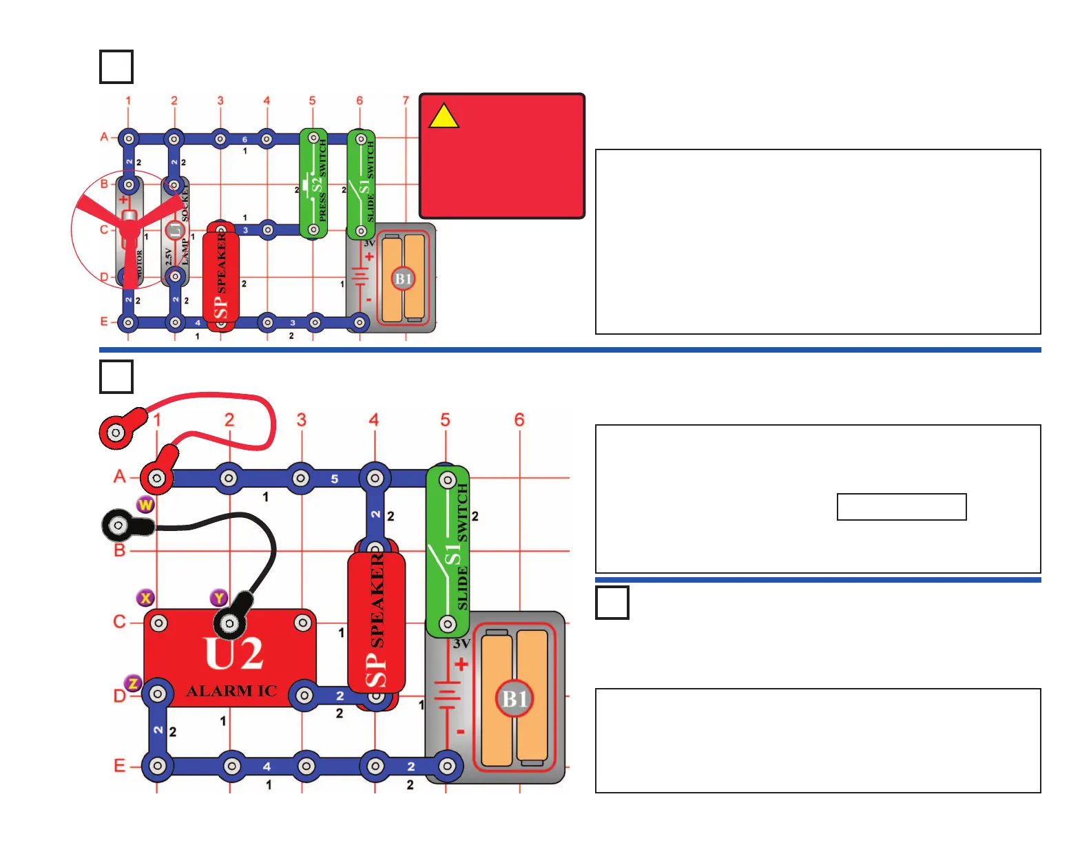 Next connect a 2-snap wire between points X & Y connect the jumper to either point. Touch the loose