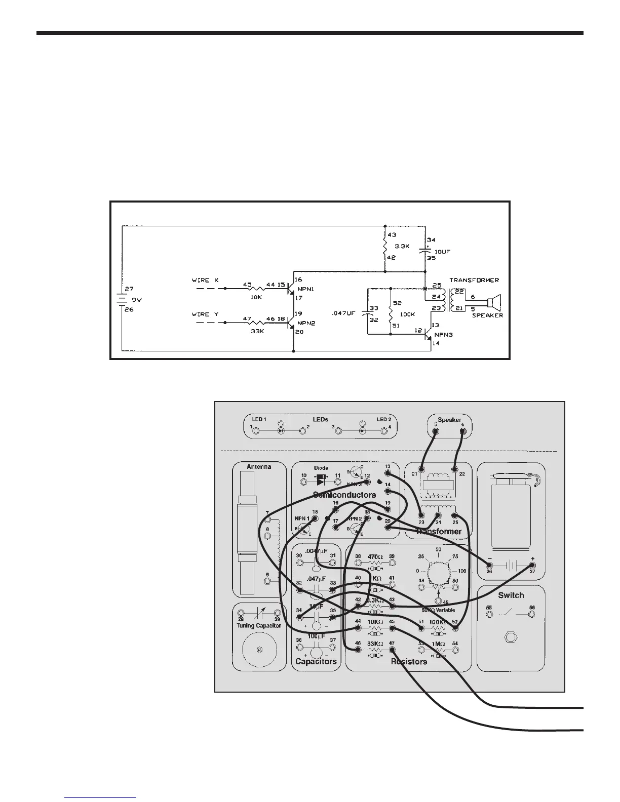 NPN2, and the 10KW, 33KW resistors.