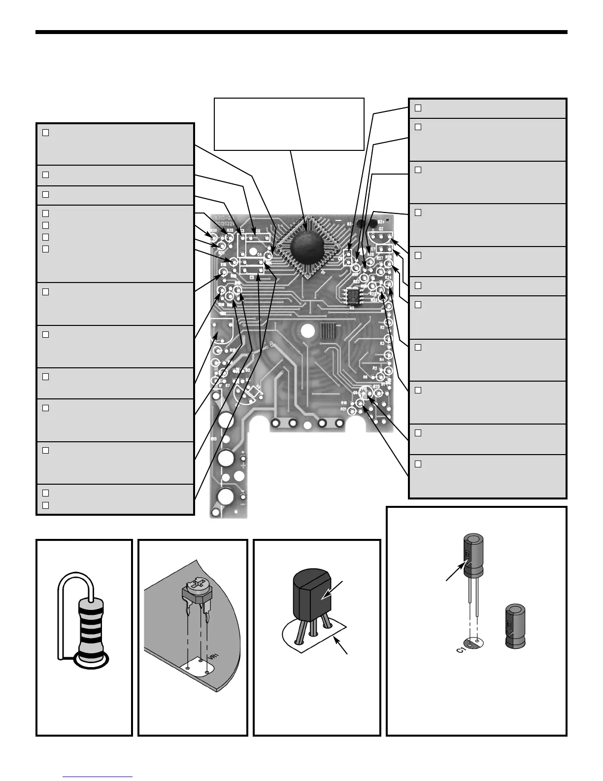 Identify and install the following parts as shown. After soldering each part, mark a check þ in the box provided.