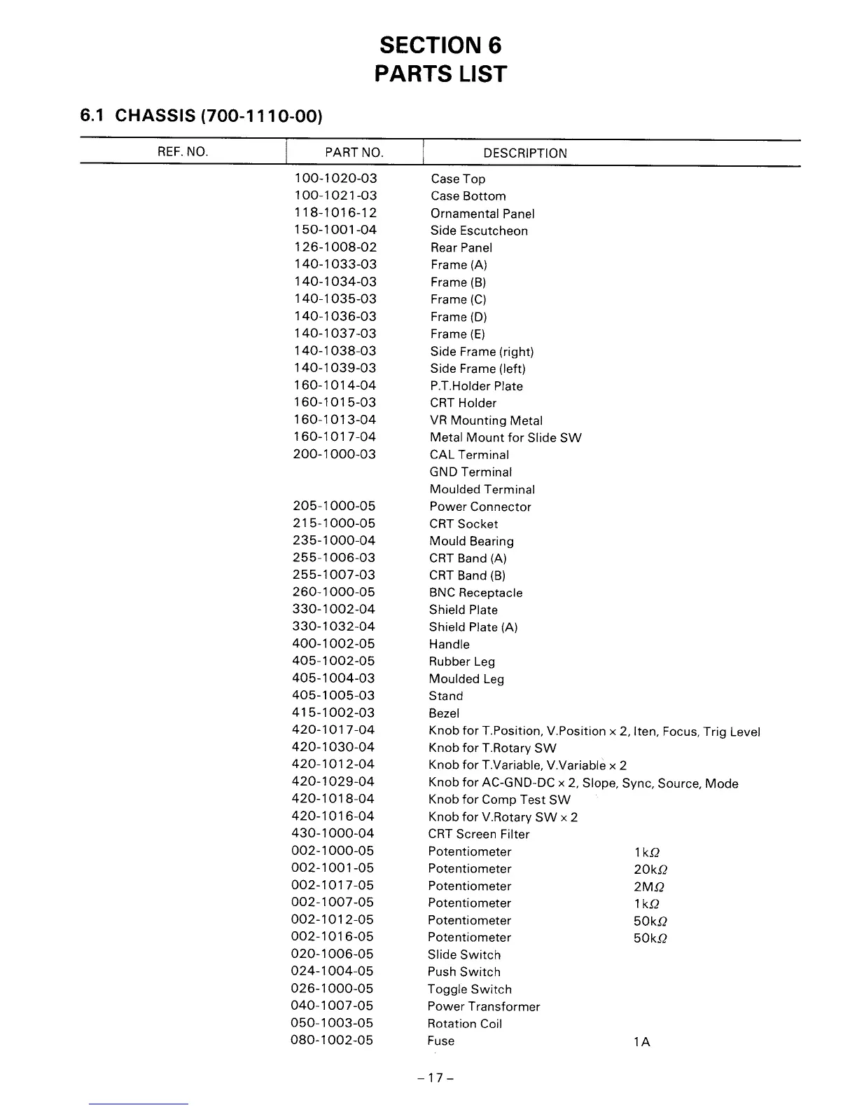 Elenco Electronics MO-1251 - Parts List; Chassis