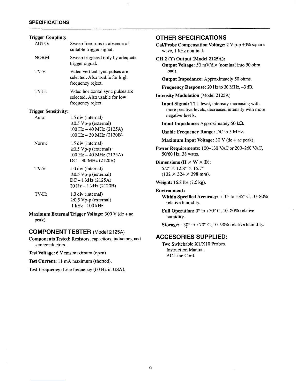 Elenco Electronics S-1325 - Component Tester Specifications; Other Specifications; Accessories Supplied