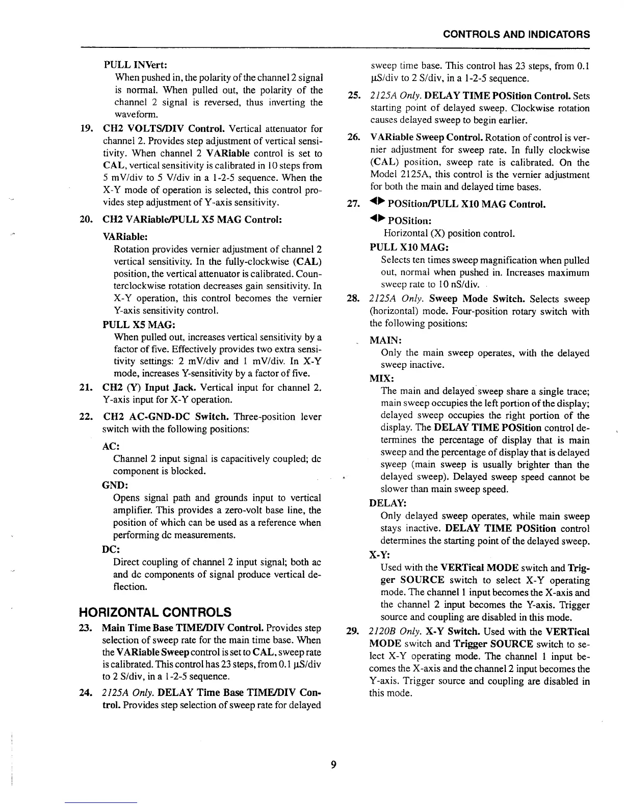 Elenco Electronics S-1325 - Channel 2 Attenuation & Input; Horizontal Sweep & Mode Selection