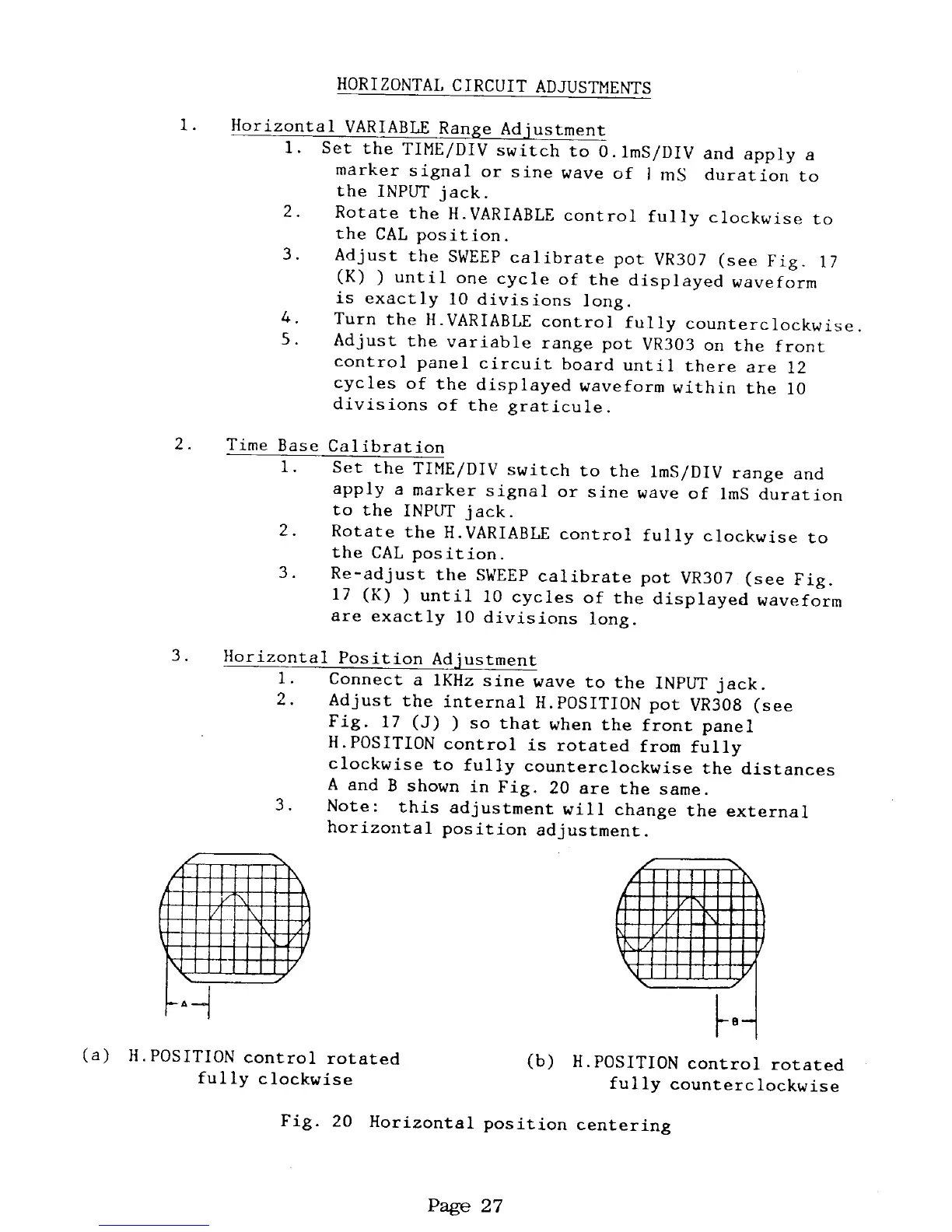 Elenco Electronics S-3000 - Horizontal Circuit Adjustments; Horizontal Variable Range Adjustment; Time Base Calibration; Horizontal Position Adjustment