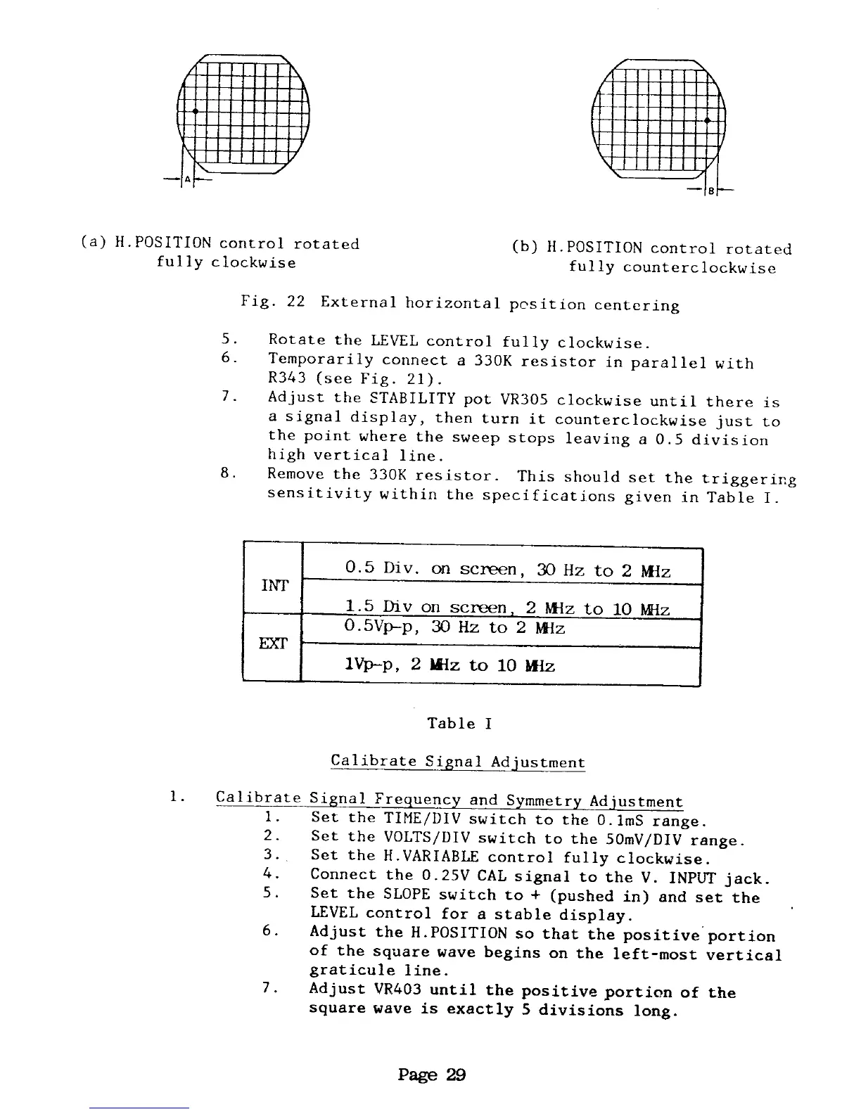 Elenco Electronics S-3000 - External Horizontal Position Centering; Calibrate Signal Adjustment; Calibrate Signal Frequency and Symmetry Adjustment