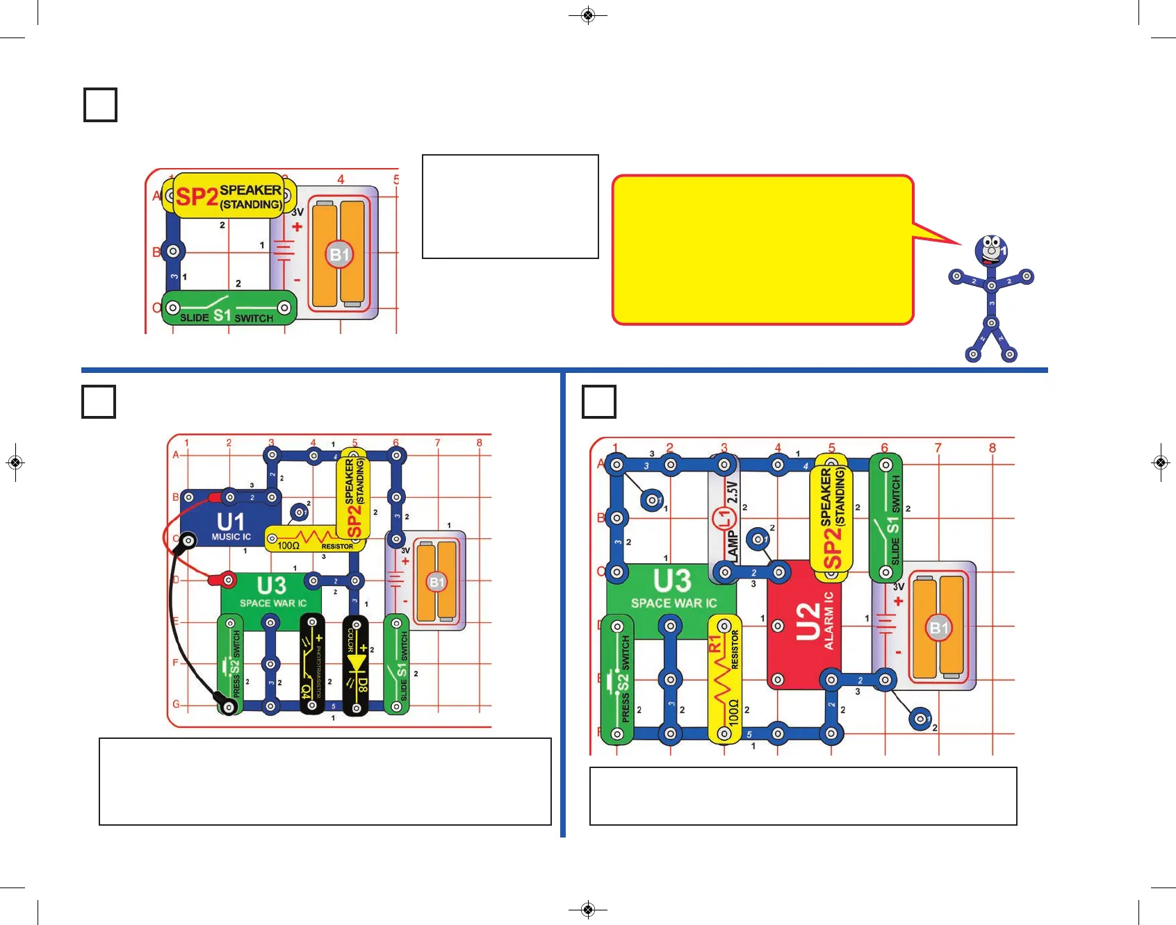 Build the circuit shown. Turn it on, press the press switch (S2) several