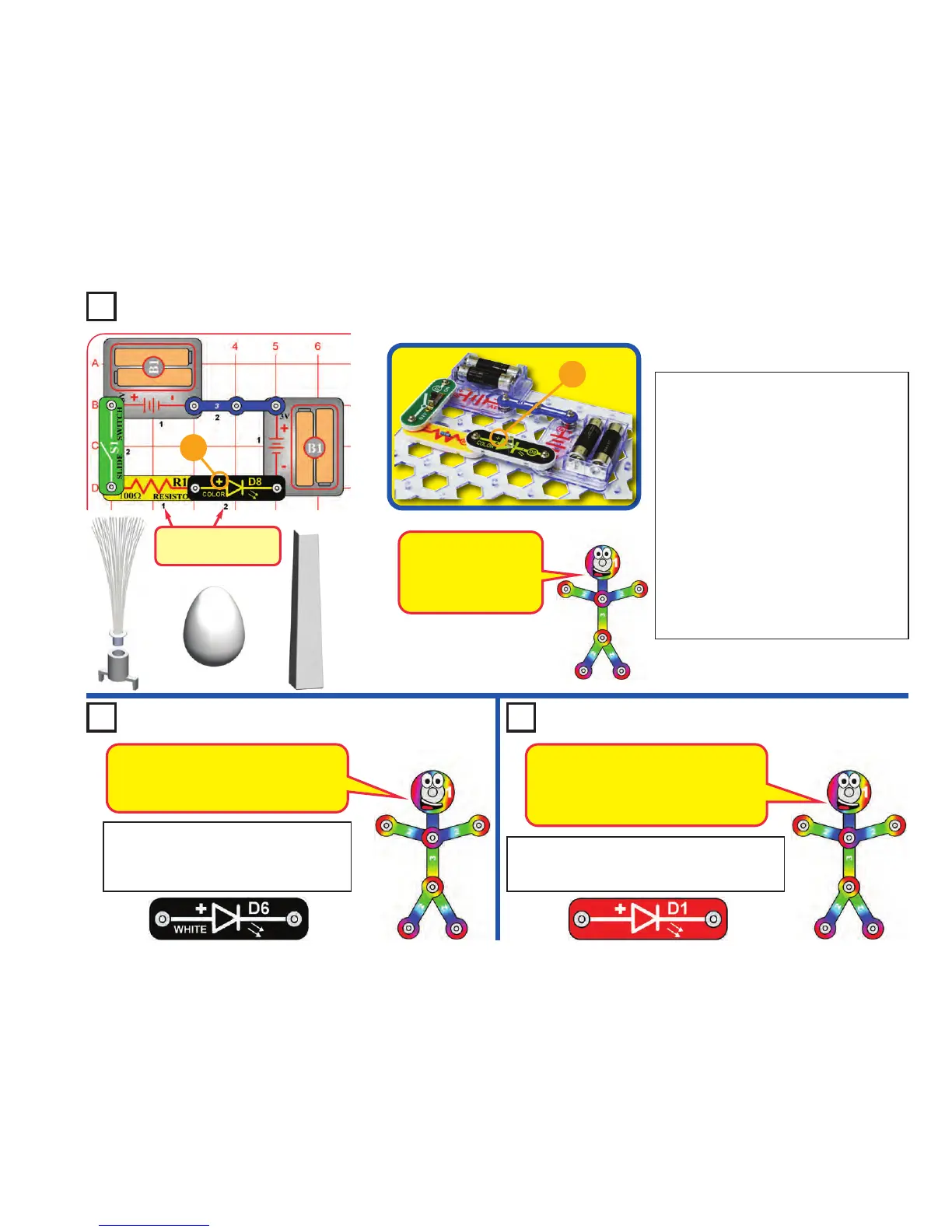 white LED (D6) with the red LED (D1). Try it with