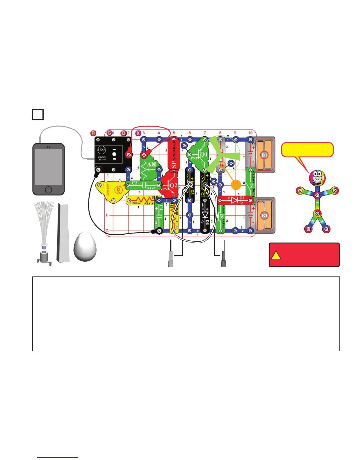 without bending them. Connect a music device to the color organ (U22)