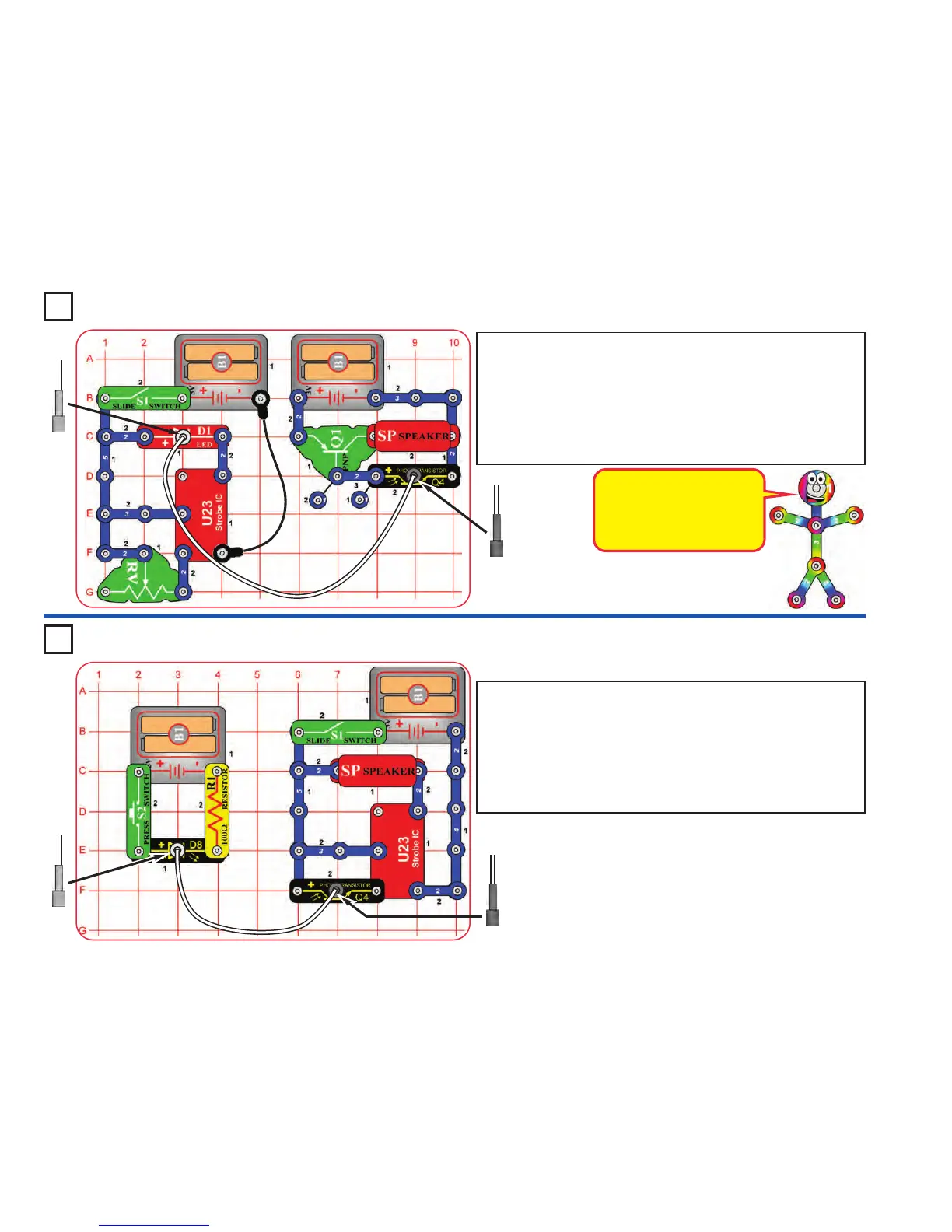 Build the circuit as shown. Place the clear cable holder on the color LED