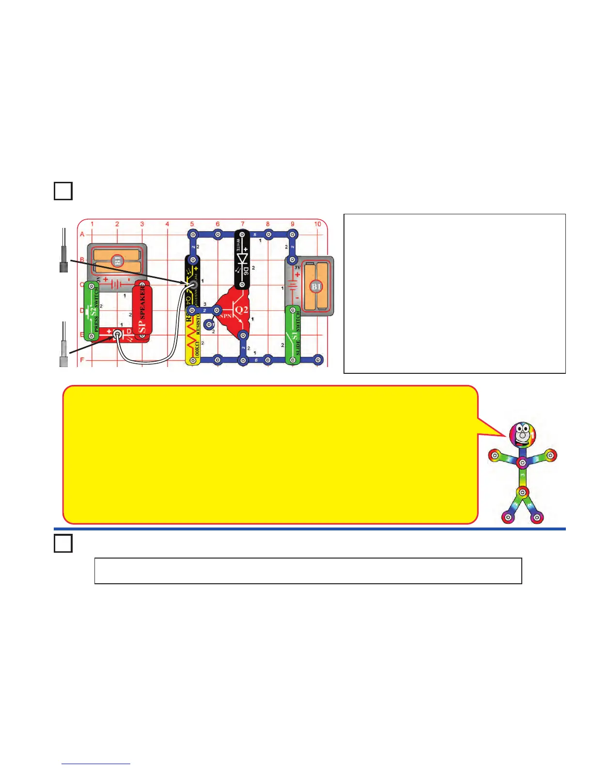 Build the circuit as shown. Place the clear cable holder on the red