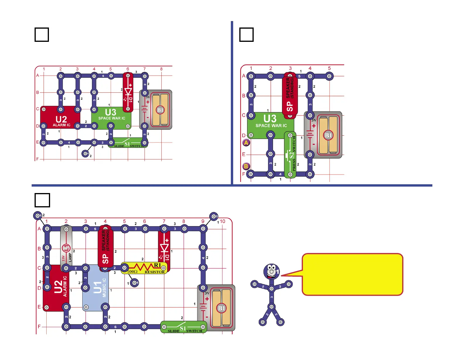 Turn the switch (S1) on and the lamp (L1) and LED (D1) start ashing.