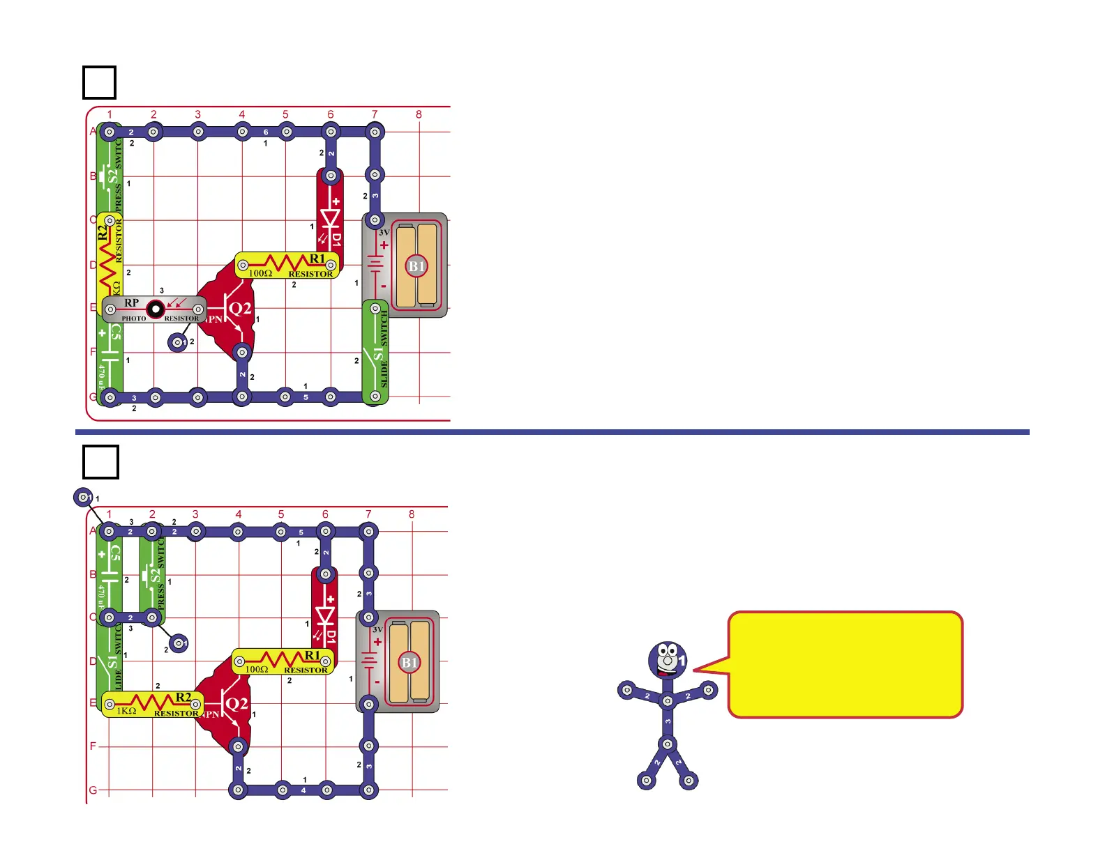 Turn on the slide switch (S1) and push the press switch (S2). If there