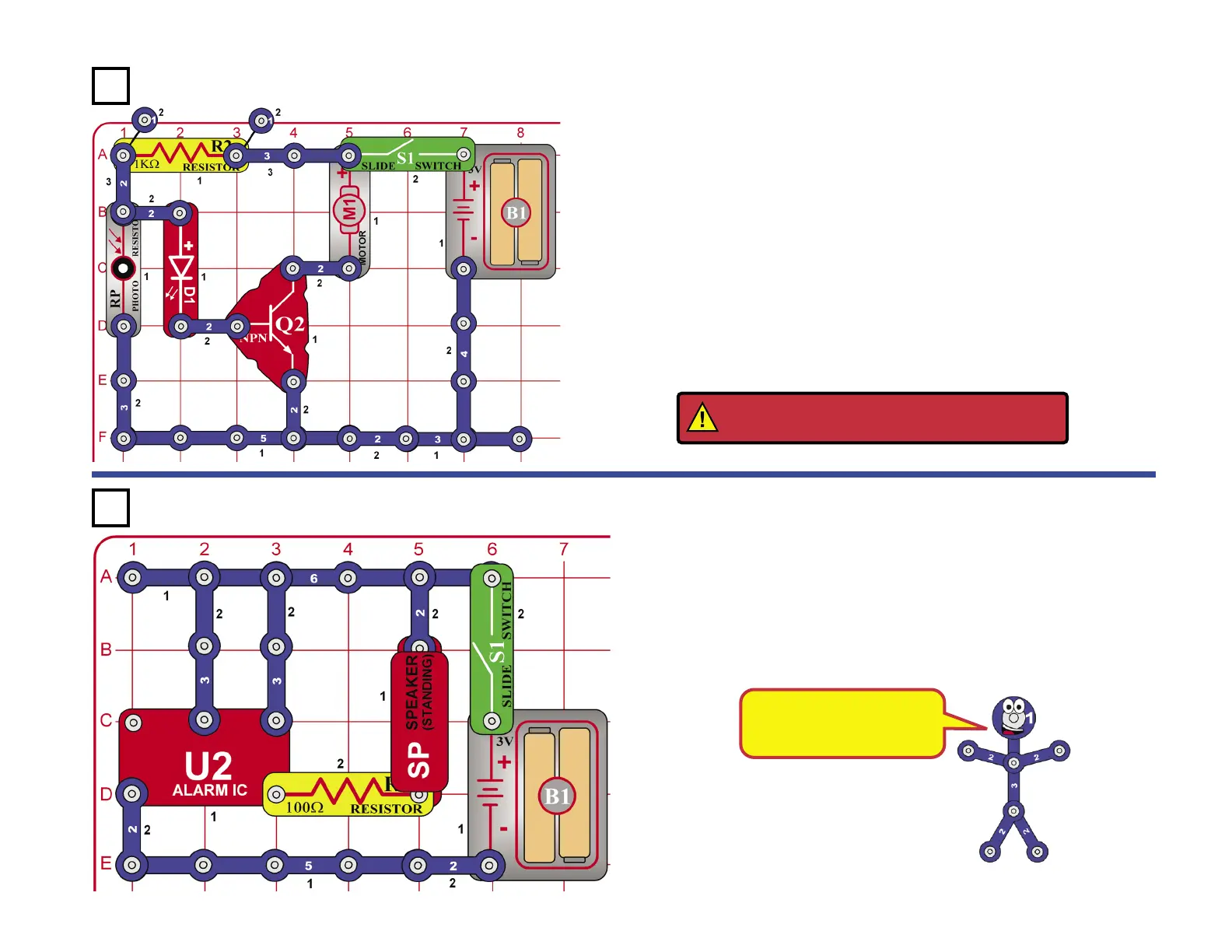 Cover the photoresistor (RP) and turn on the slide switch (S1).