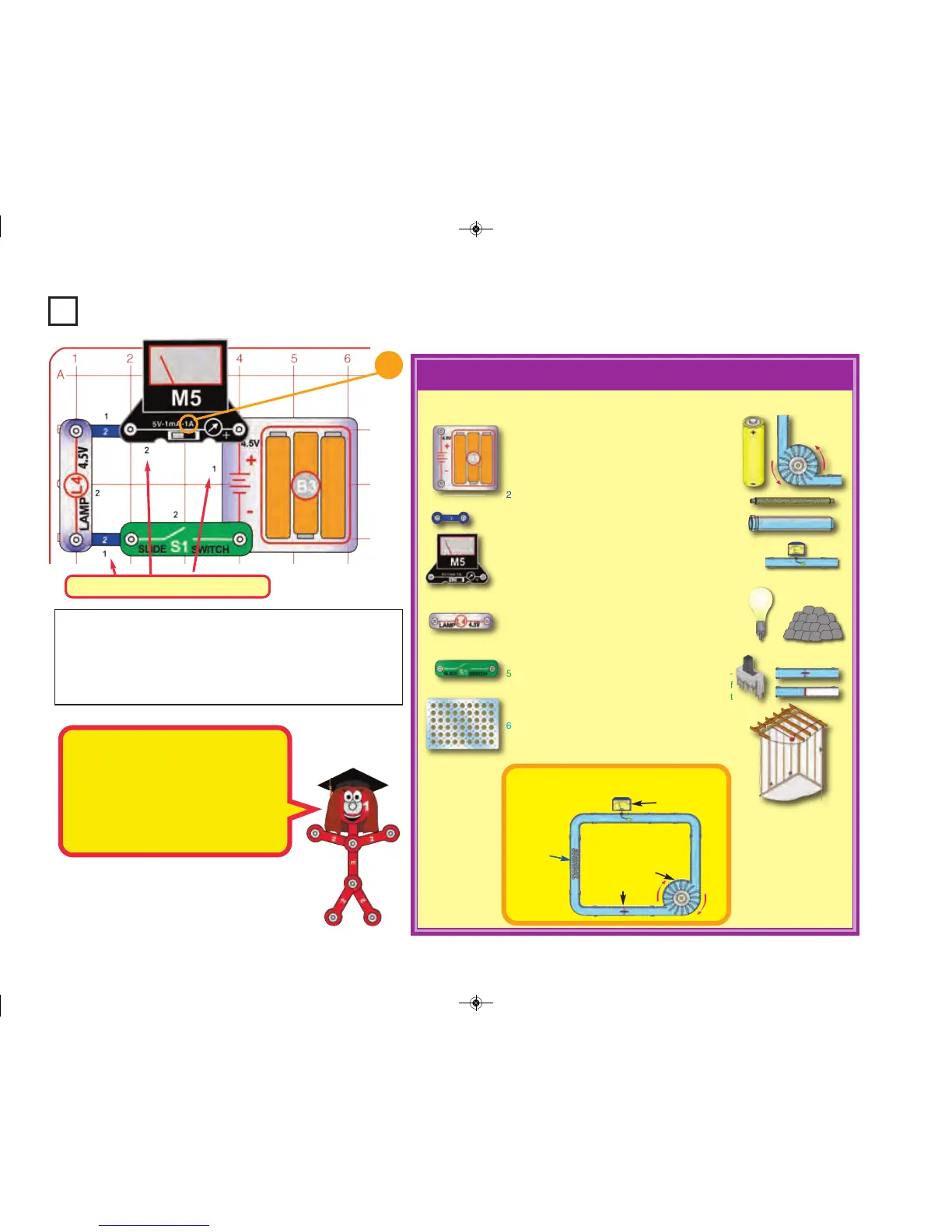 slide switch (S1); the lamp (L4) lights and the meter measures