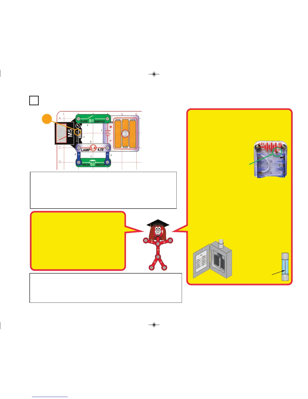 Build the circuit, set the meter (M5) to the 1A setting, and turn on the slide switch