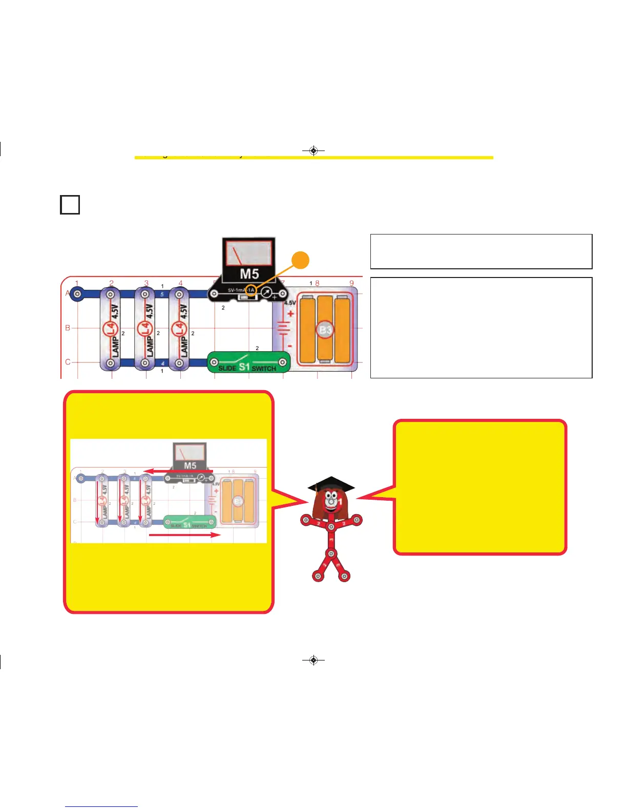 Build the circuit, set the meter (M5) to the 1A setting, and turn