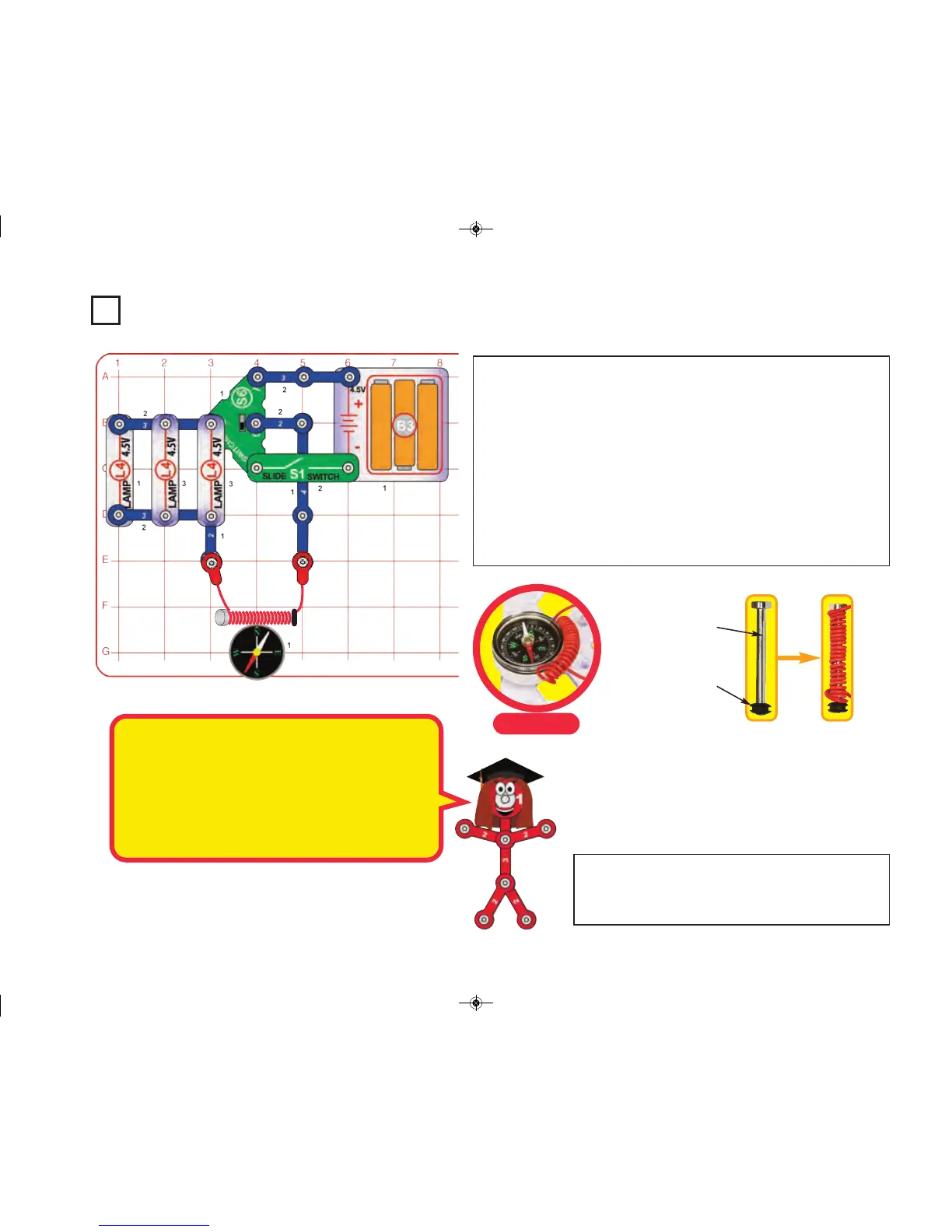 switch and watch the compass while moving the coiled red wire around it.