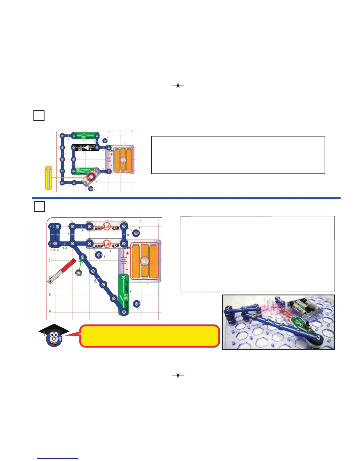 Build the circuit as shown, and turn on the slide switch (S1). The electromagnet (M3)