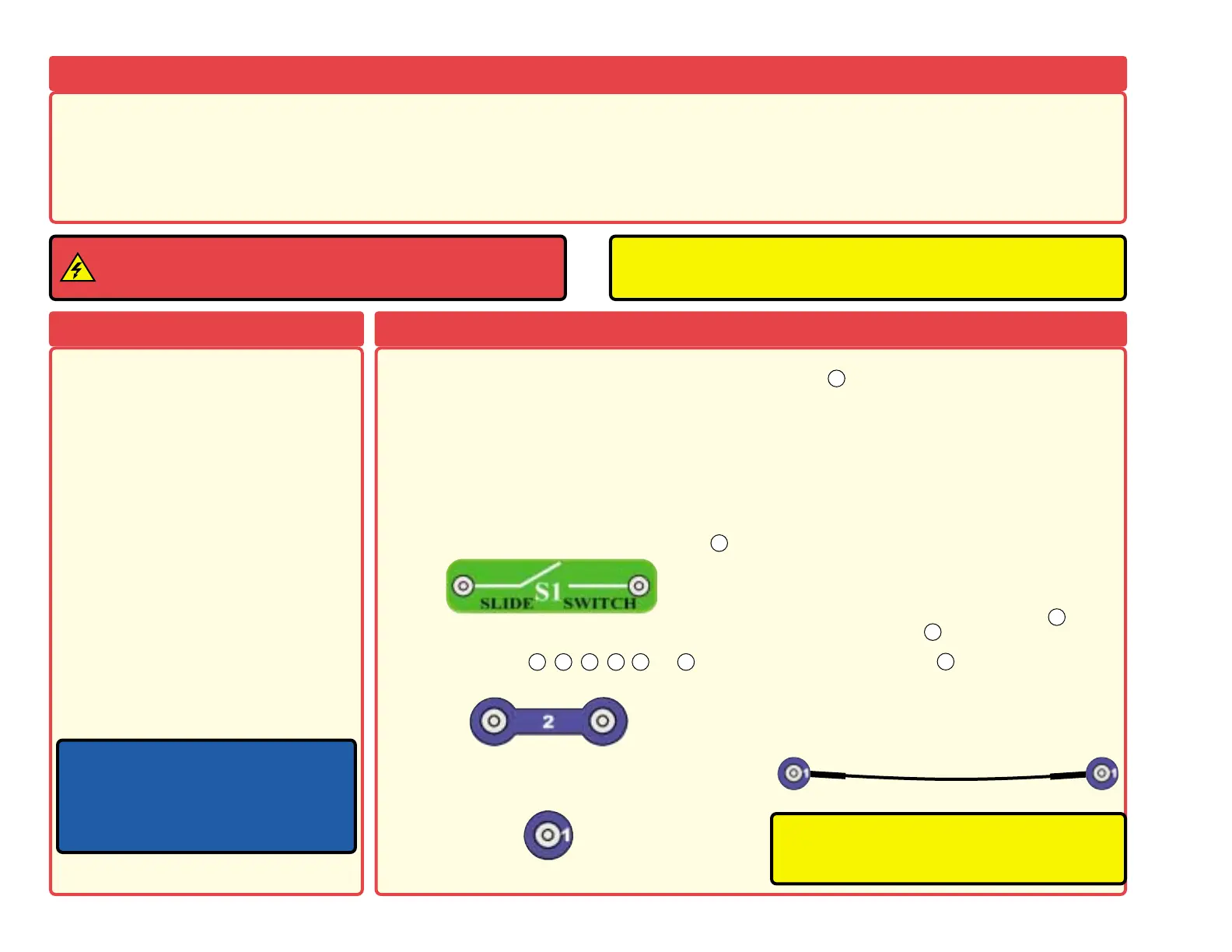 WARNING: SHOCK HAZARD - Never connect snap circuits to