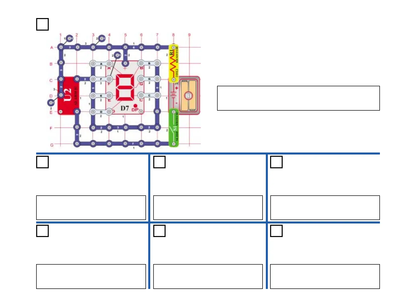 connect A, D, E, F, & G to flash the capital letter “E”.
