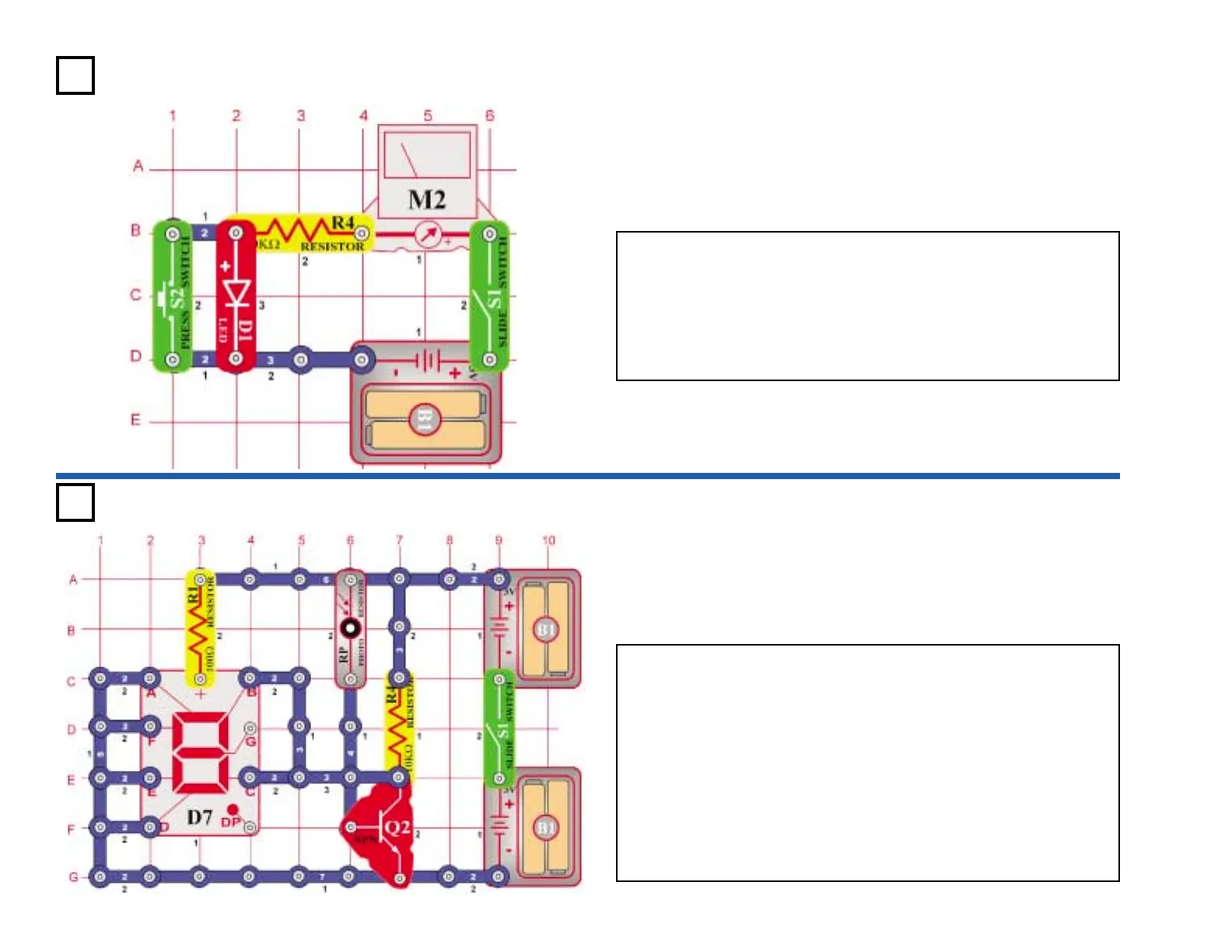 the red LED with the green LED (D2) and then the diode (D3), to see the