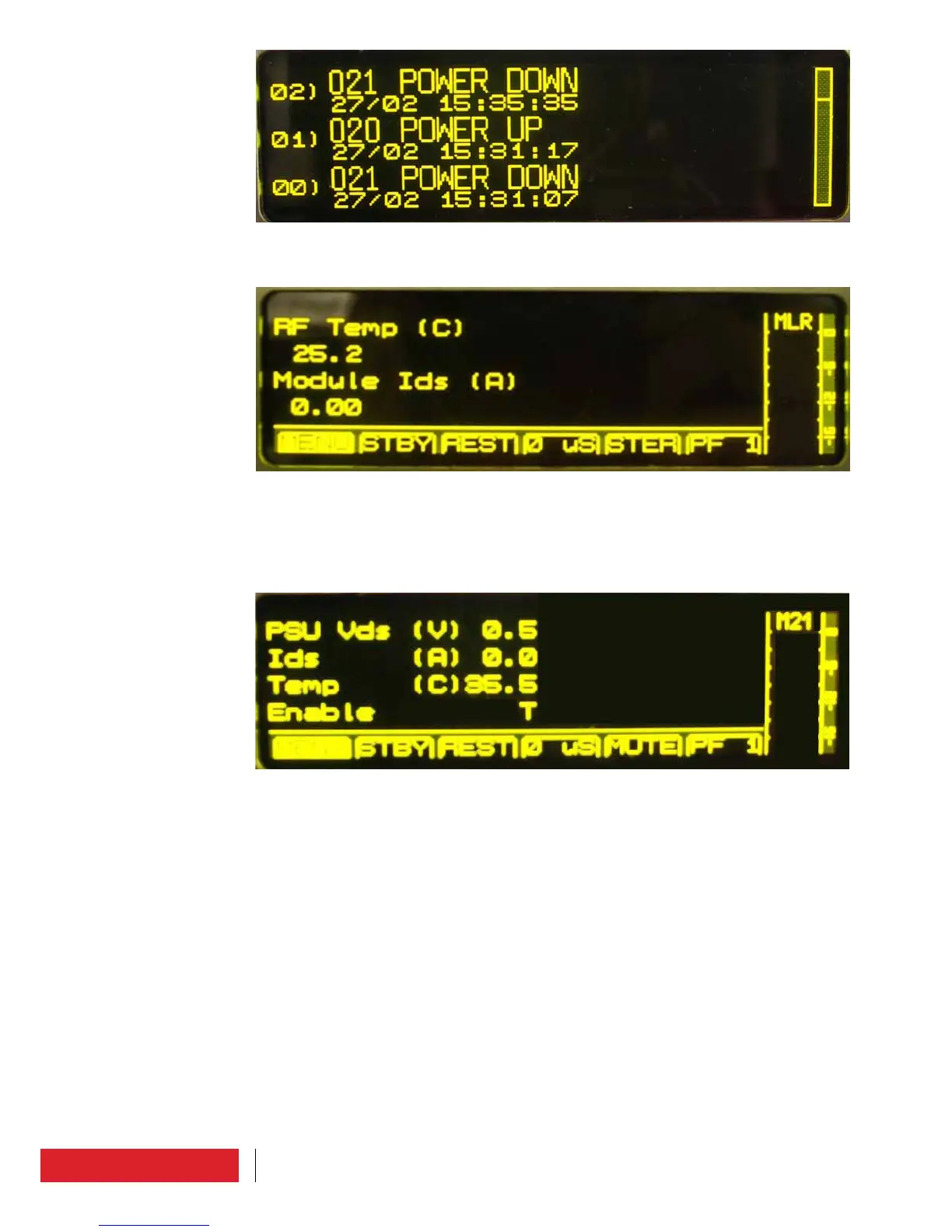 Temperatures and currents of each RF modules are displayed.