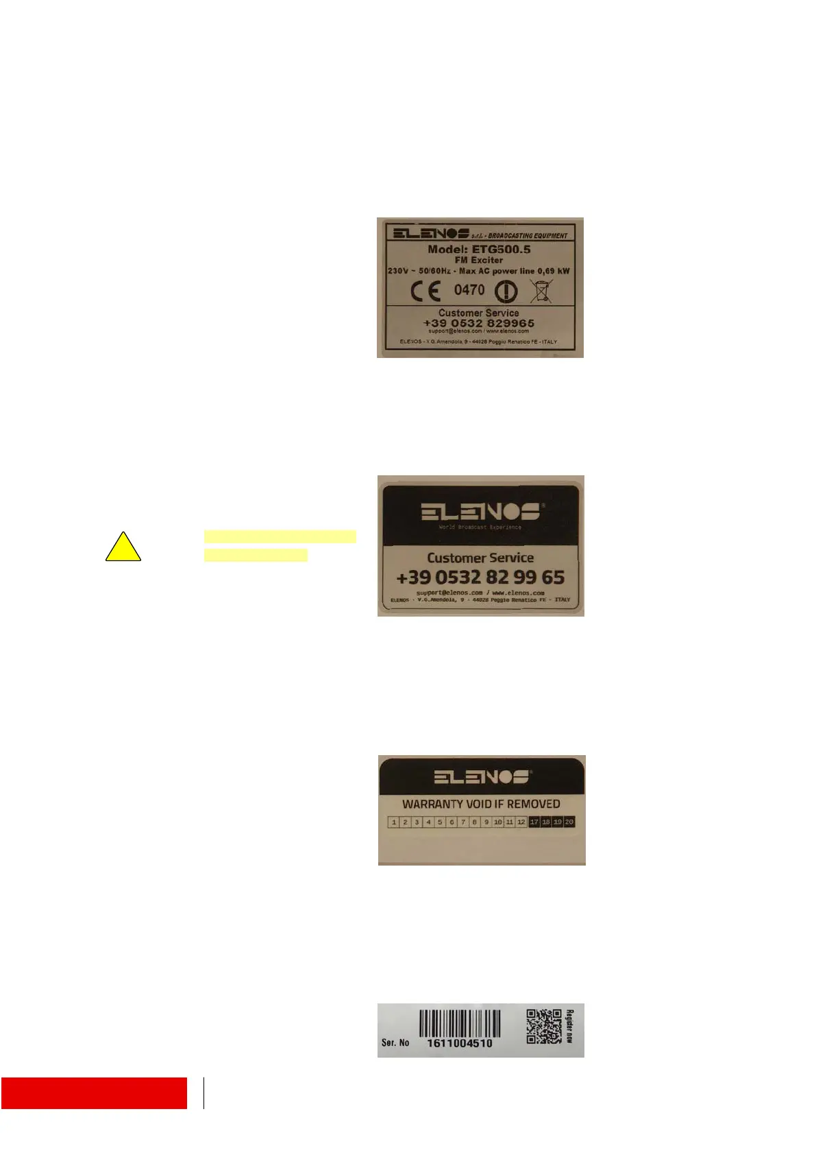 It shows the serial number of the equipment in numeric and barcode format. In addition,