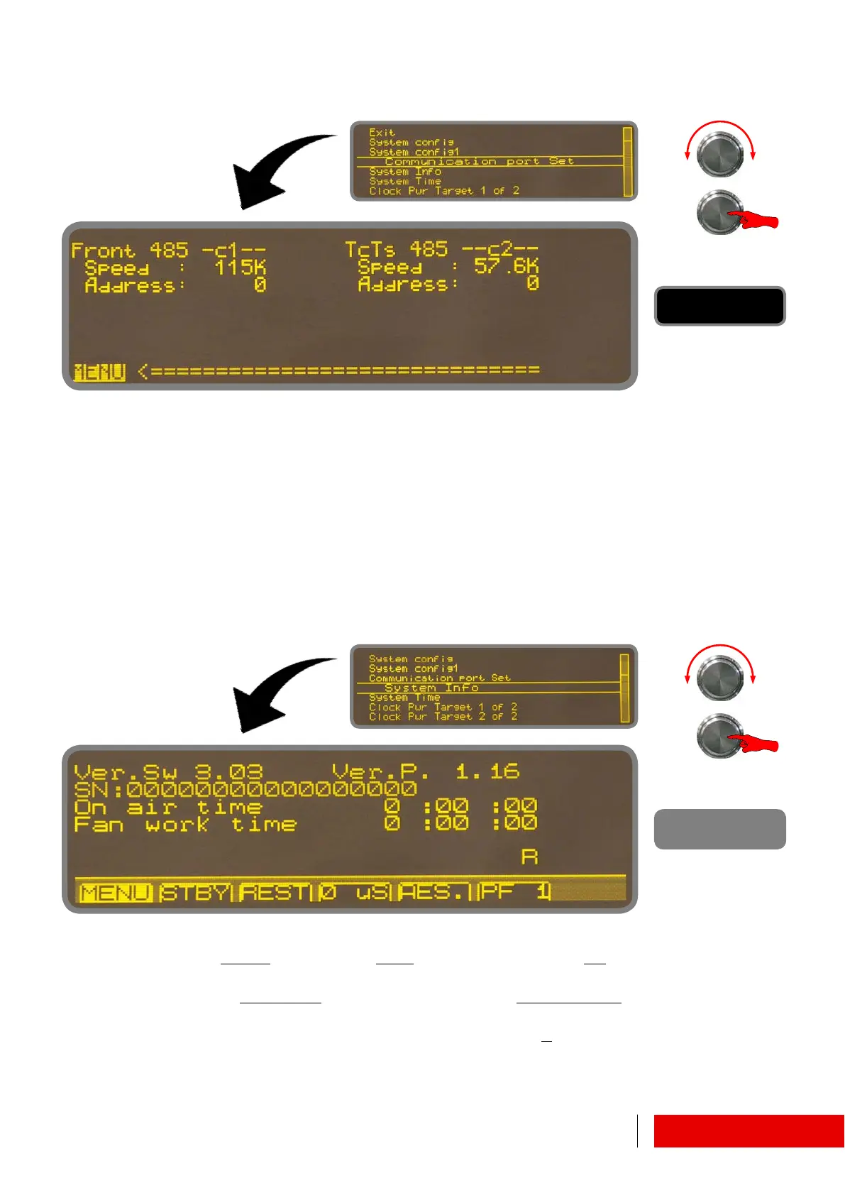 6.1.4 System Menu ! Communication Port Set / System Info