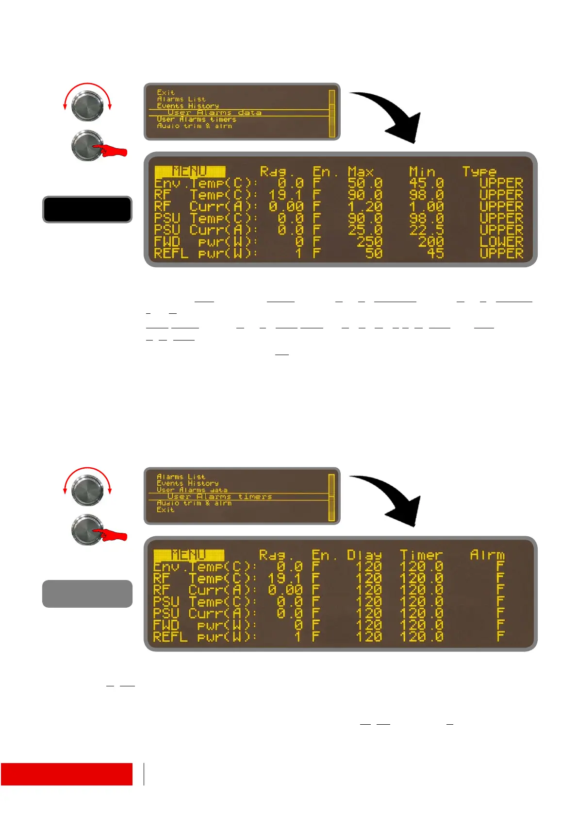 6.1.13 Alarm Menu ! User Alarm Data / User Alarms Timers