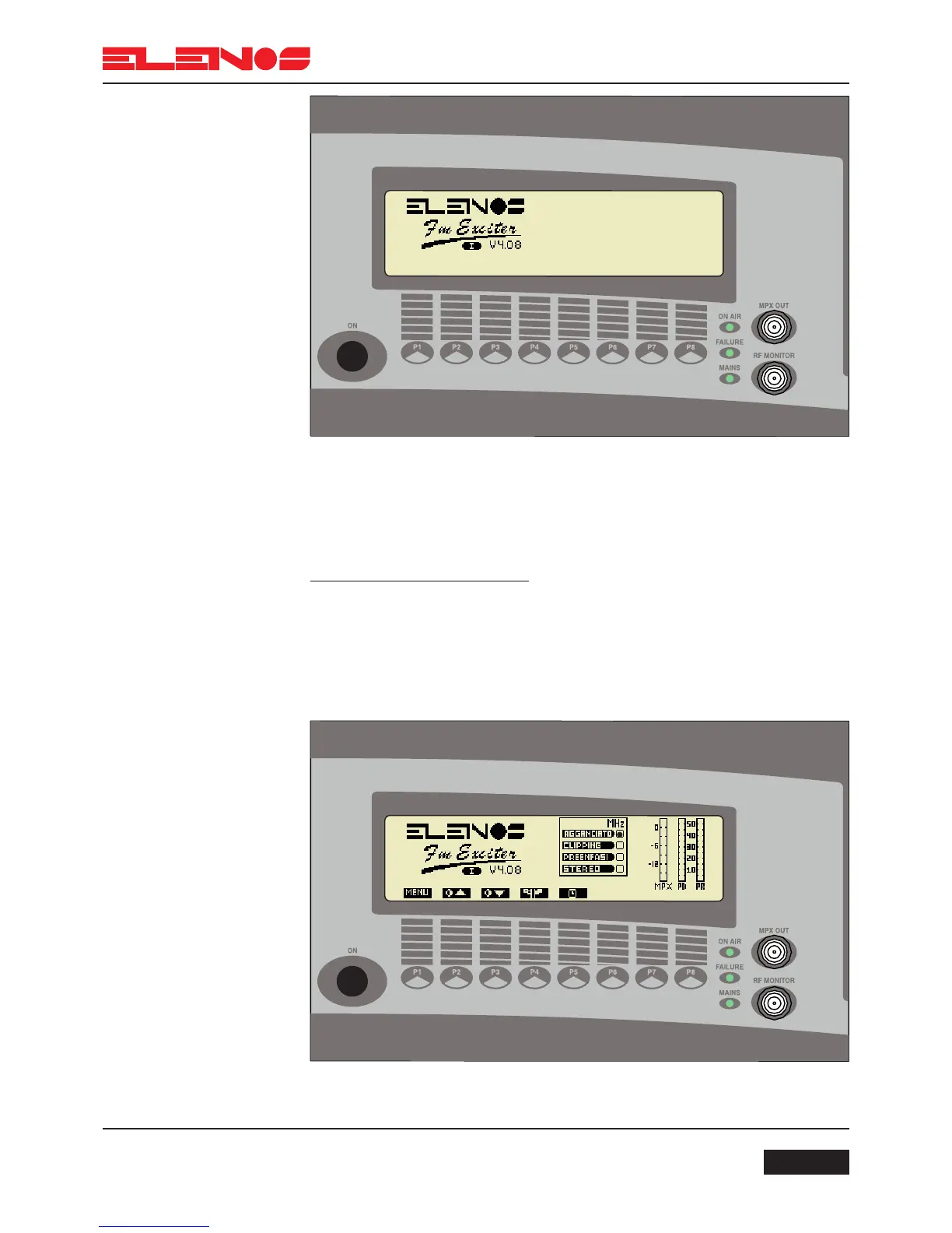 On termination of the countdown, the main menu will appear (with the ELENOS logo or