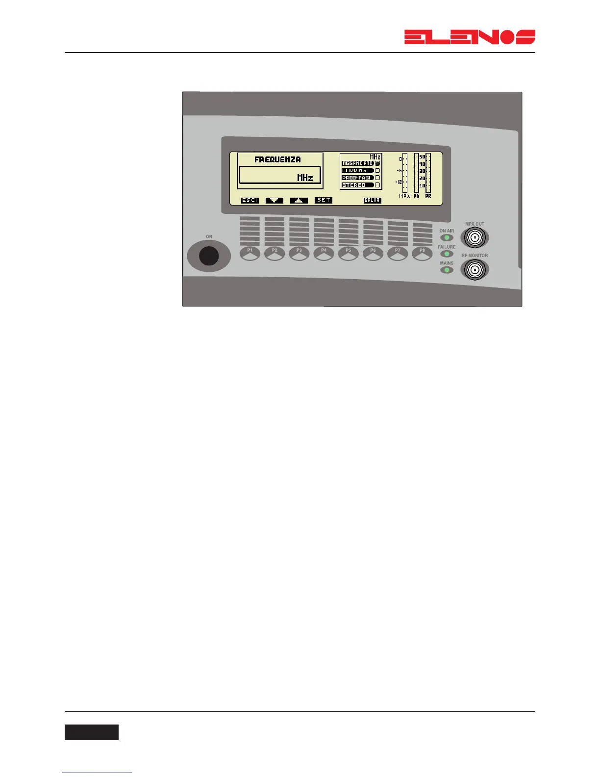 The frequency menu displays the following parameters: MPX level, direct power,