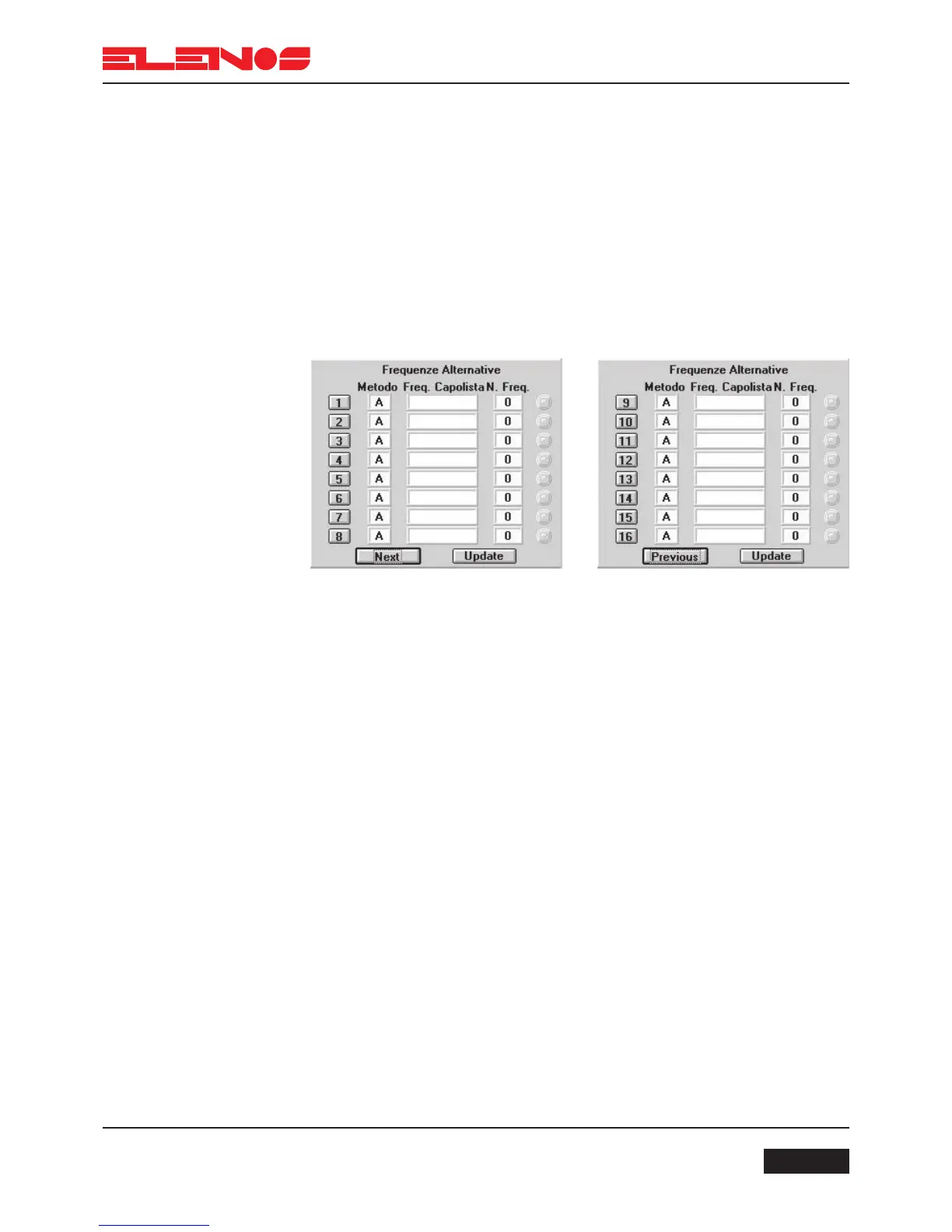 The Alternative frequencies section allows 16 lists of different frequencies to be