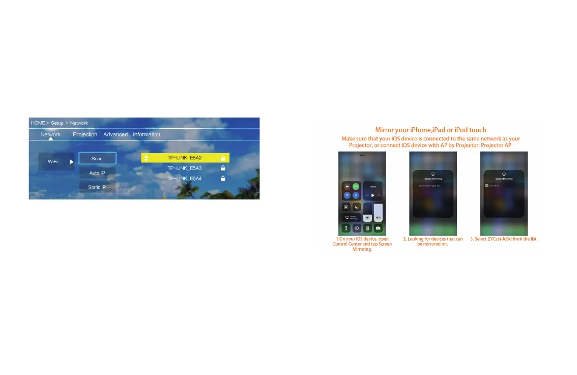 Step2: iOS devices and projectors must be connected to the same network, or