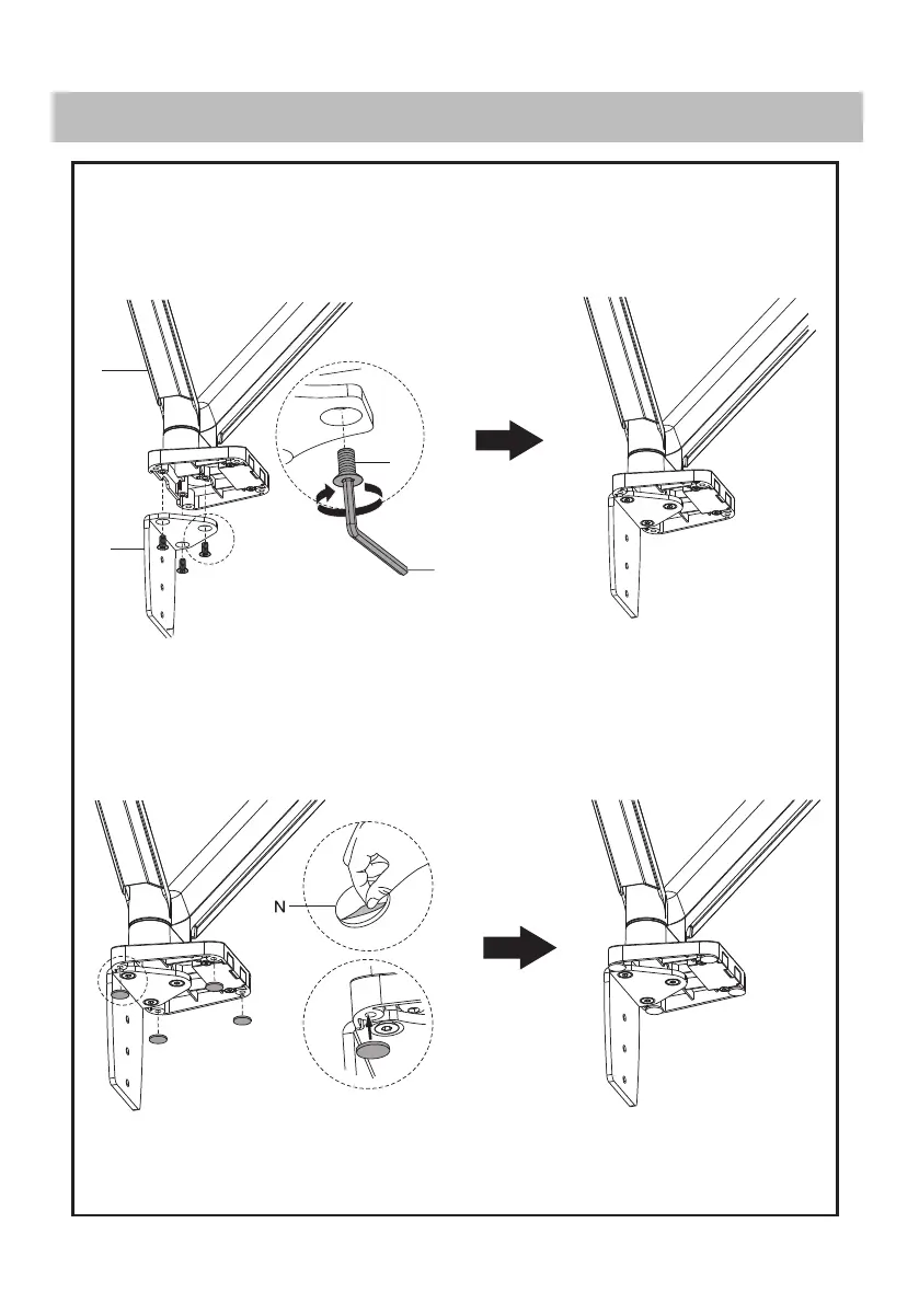 Apply pads (N) to bottom of base to prevent table top from being scratched.