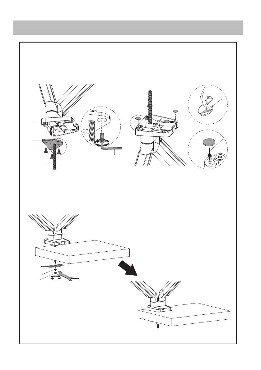 Position stand on desk with long screw through hole, and secure by using the support plate (H)