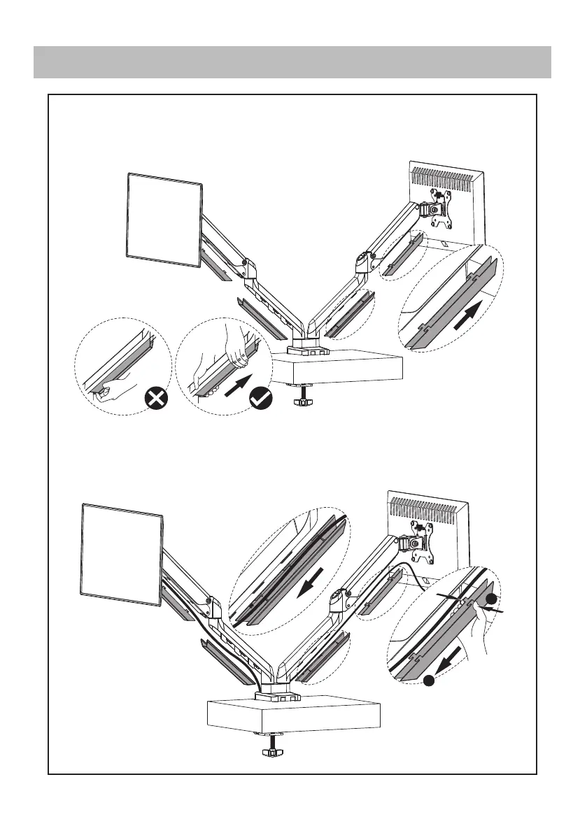 On the bottom portion of the spring arm, insert the cable and slide the cable cover down;