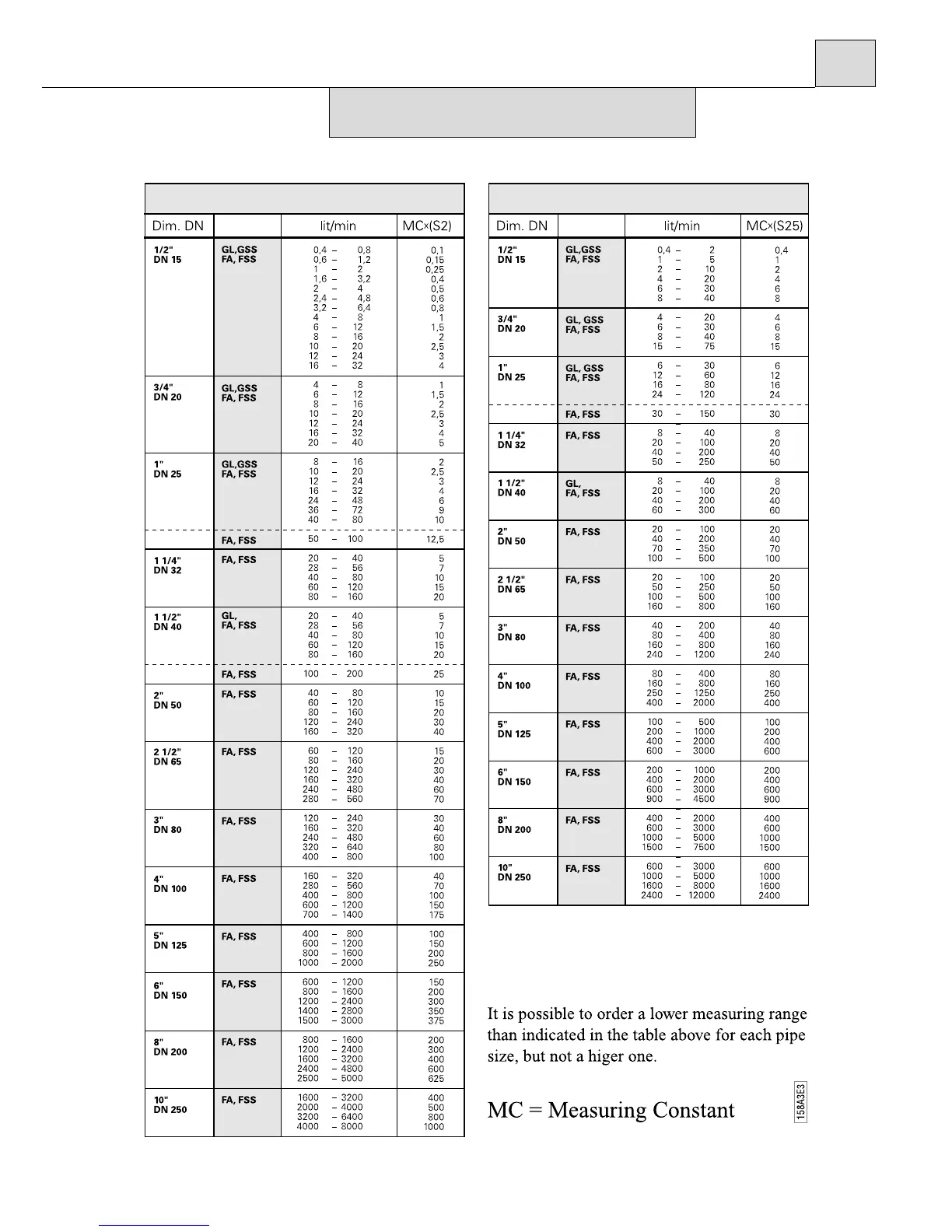Eletta S2 - 6 Tables; Measuring Ranges