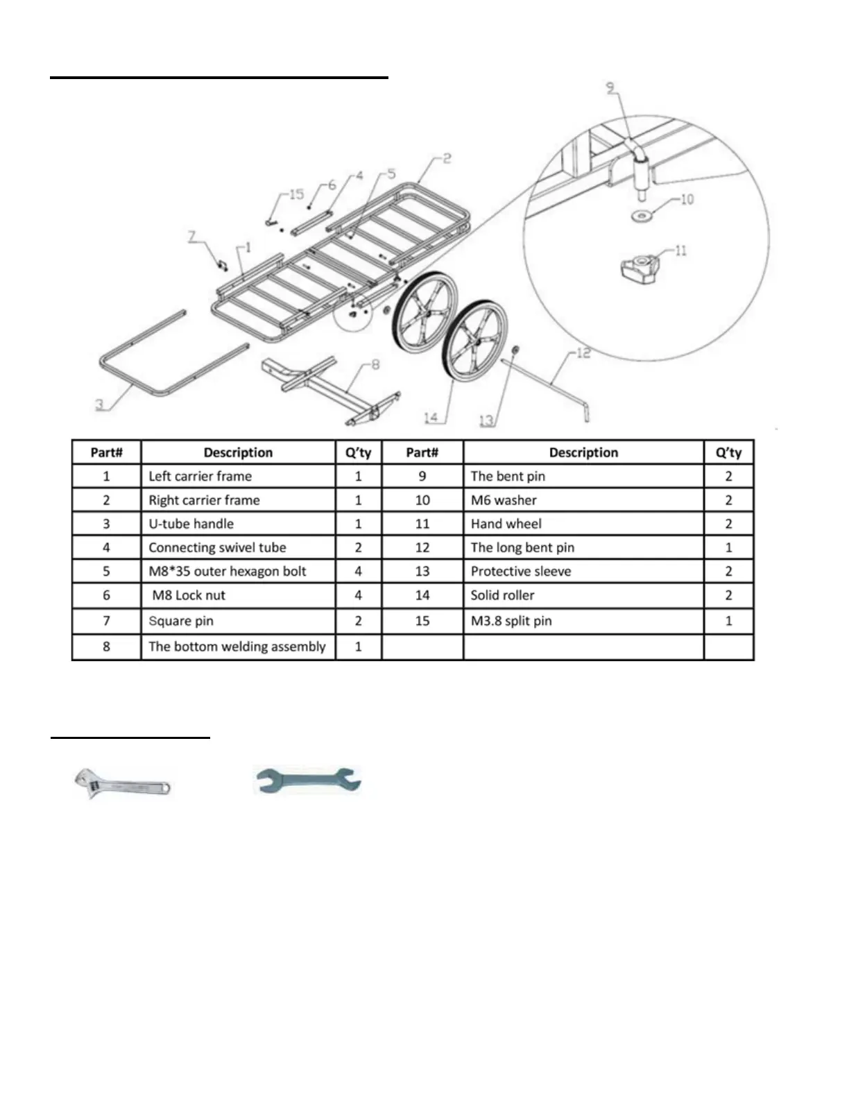 ELEVATE CARGO-CART - Diagram and Parts List; Tools Needed