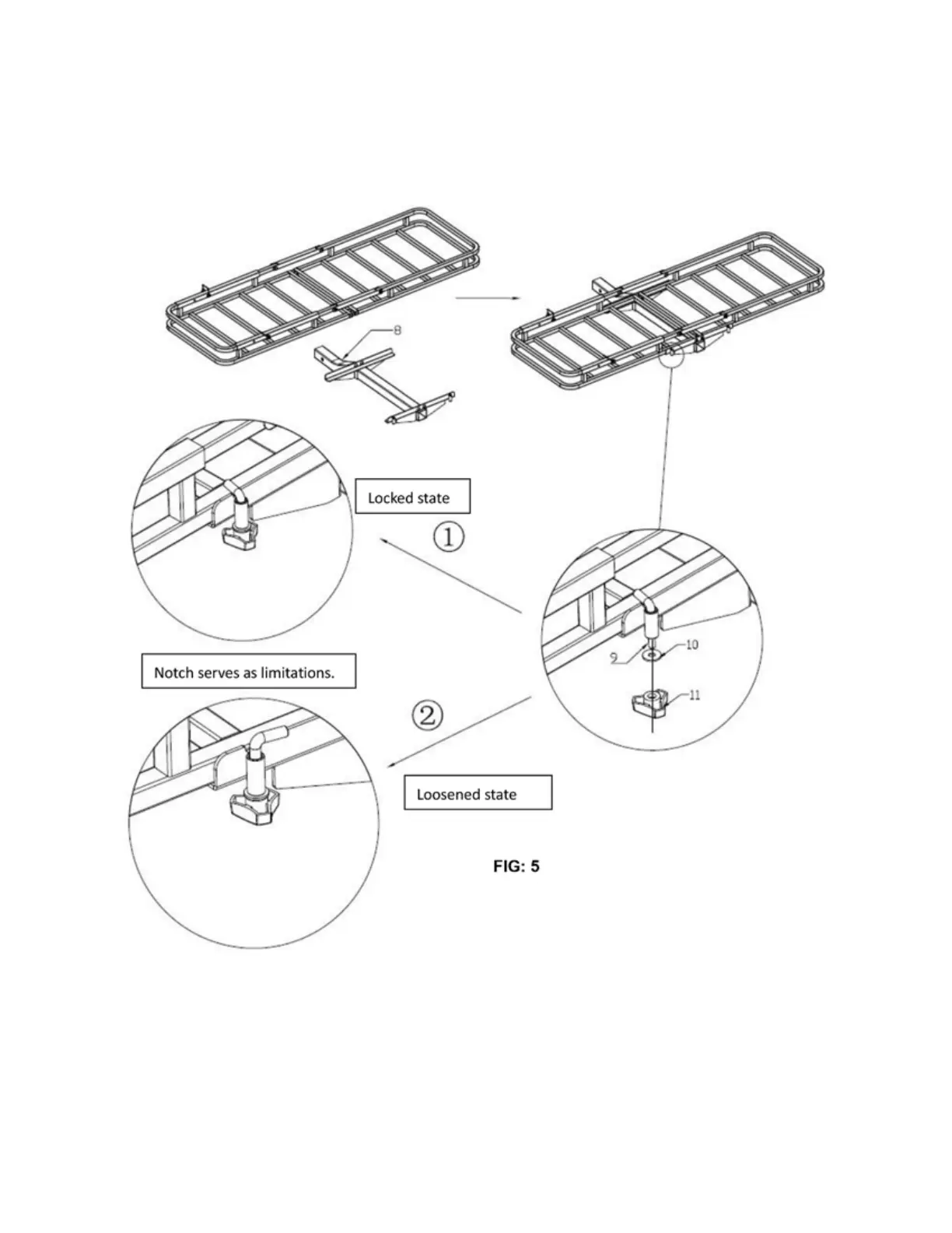 Compress the bottom of the carrier frame as shown, screw the hand wheel (11) (2Pcs). See FIG 5.
