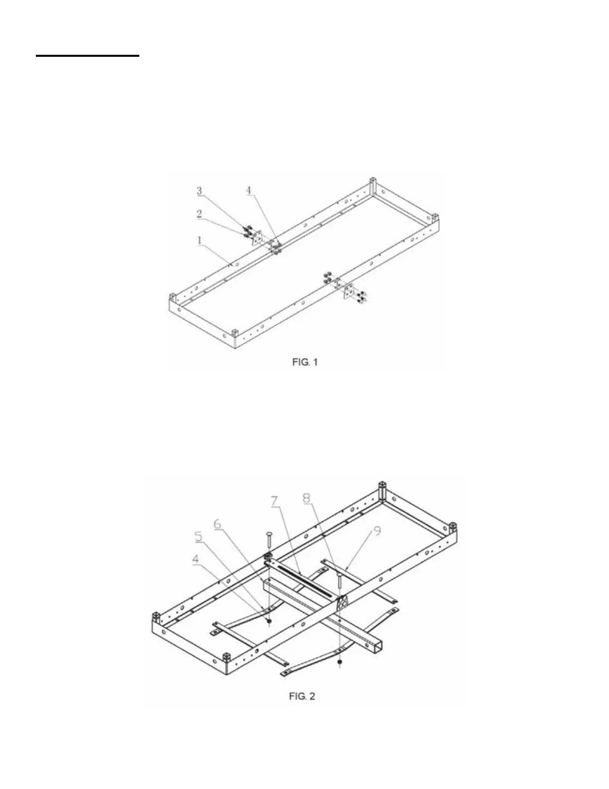 Step 1. Connect the two supporting frames (1) with the connecting piece (2). Line up the corresponding square