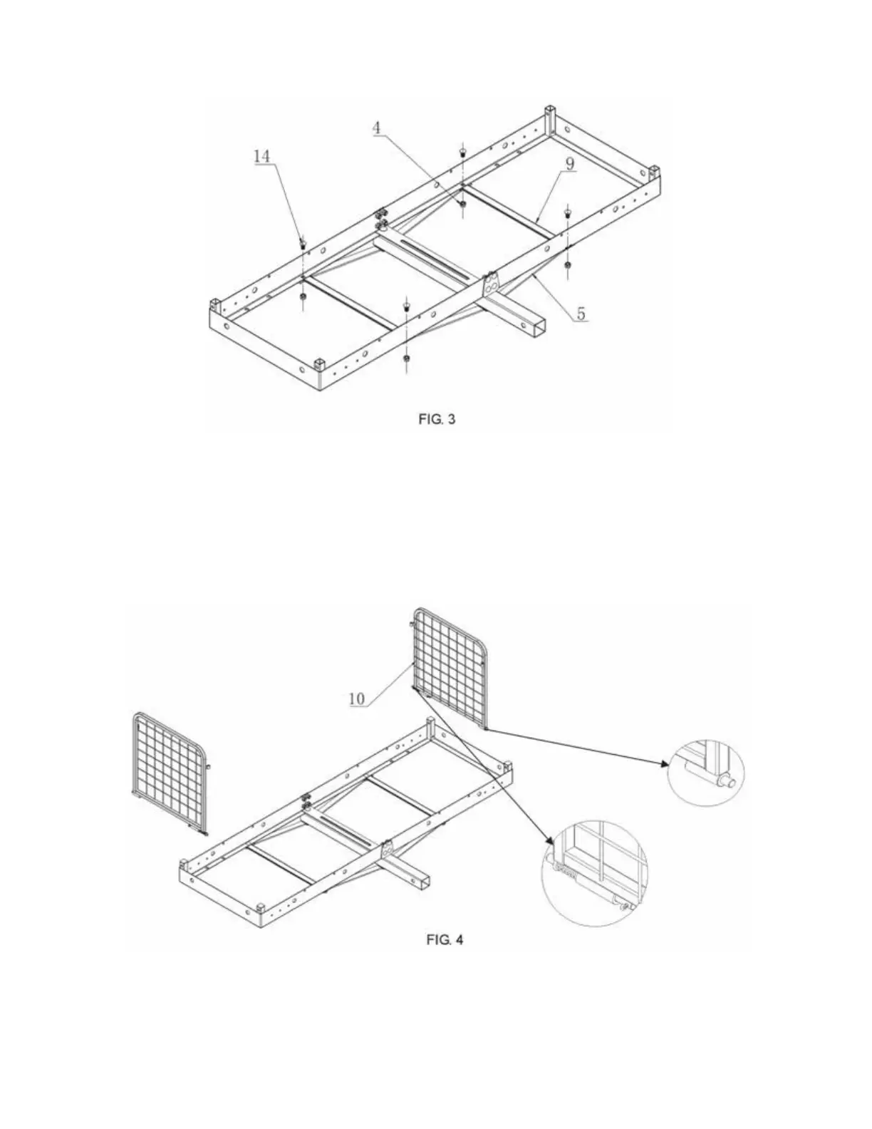 M10x25 carriage bolts (14) and four M10 lock nuts (4). Do not tighten completely yet. See Fig. 3.