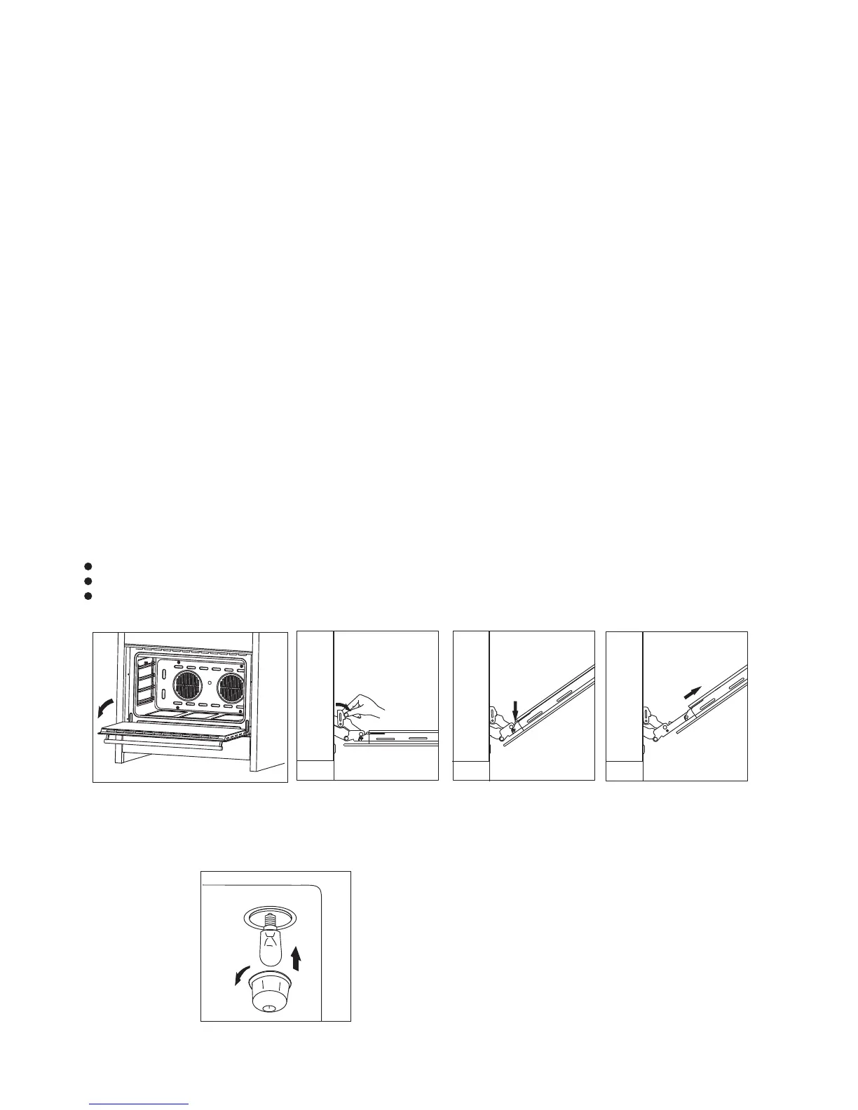 Once the oven has been electrically disconnected, unscrew the glass protection cap and the bulb, Always