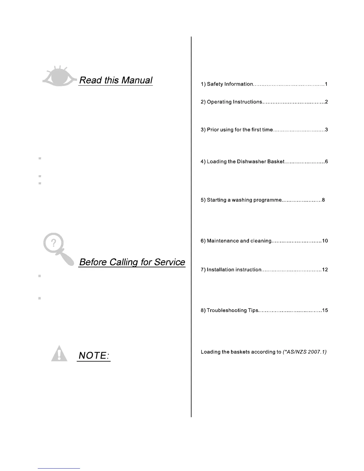 Be fo re cal l ing for s er vic e. . ... .. .. ... . ... . ... .. ... .. . .. ..1 5.