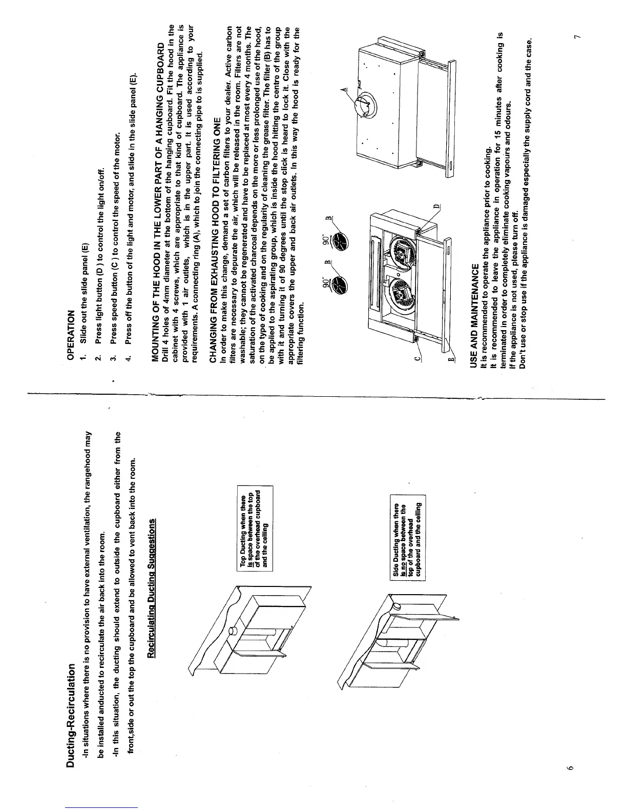 Elfa SL601 - Recirculation Ducting Installation; Operation and Maintenance; Operating the Cooker Hood; Hood Mounting in Cabinet