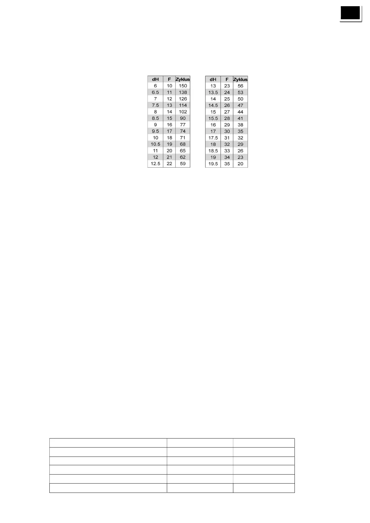 2) Der Spülgang kann länger dauern, falls die Wassertemperatur nicht der in den technischen Unterlagen